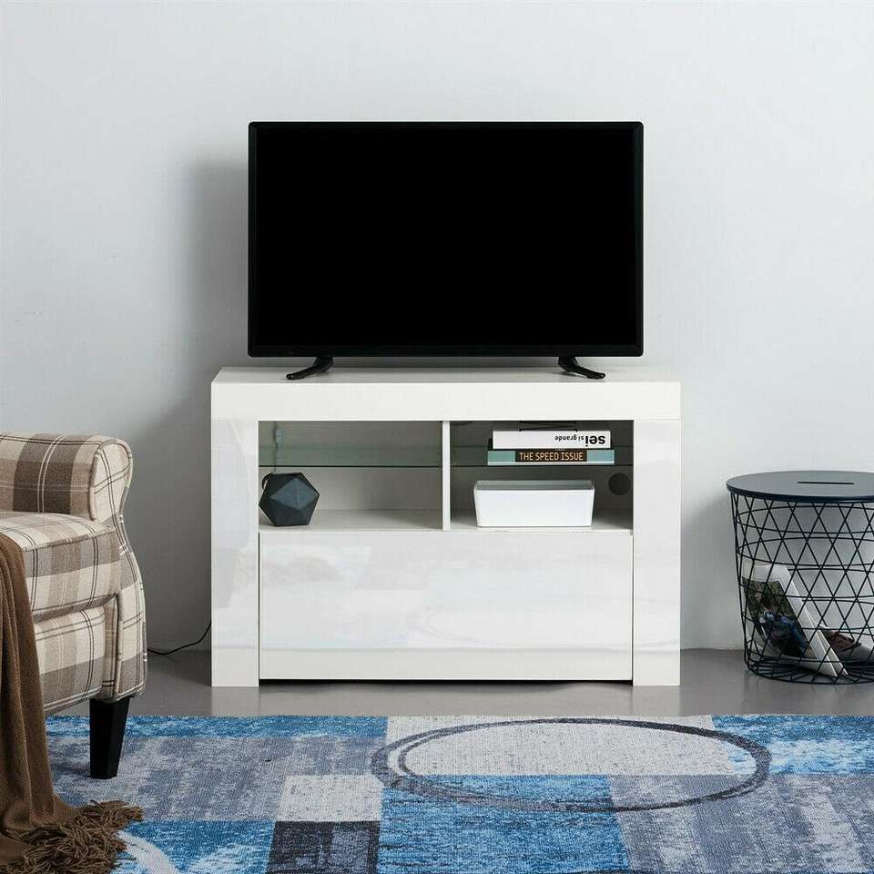 Armadio moderno per unità TV della credenza con porte lucide e luci a LED pannello opaco per mobili per la casa da salotto