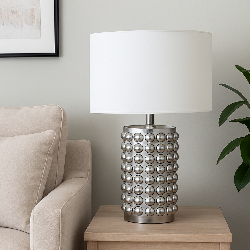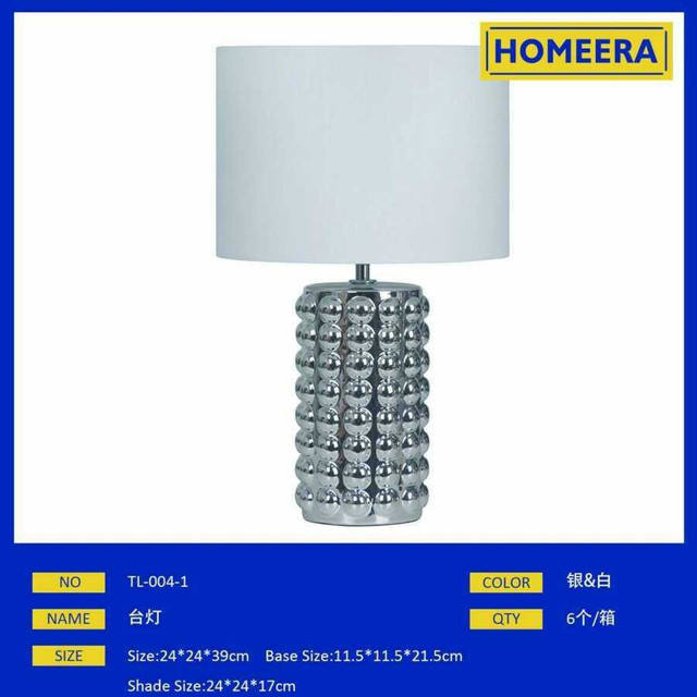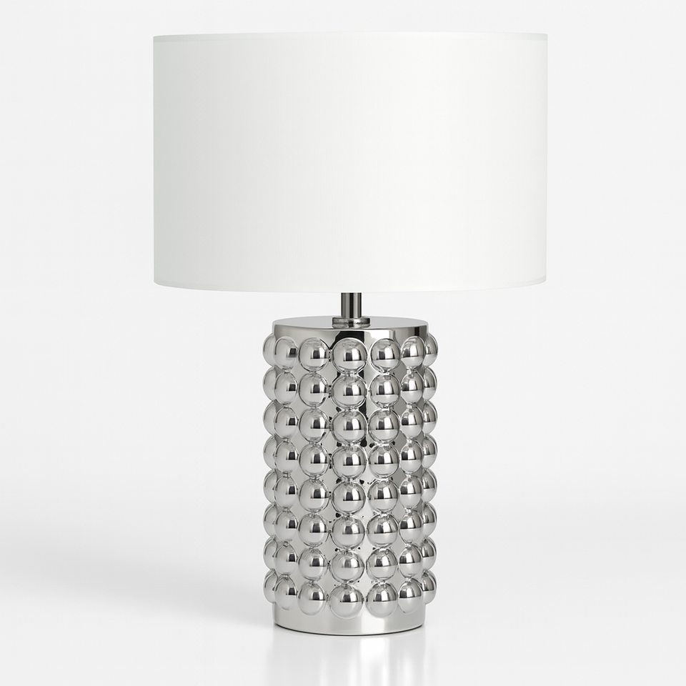 Modern Silver Ceramic Table Lamp with White Fabric Shade, Elegant Nightstand Lighting for Bedroom, Living Room, Hotel Decor