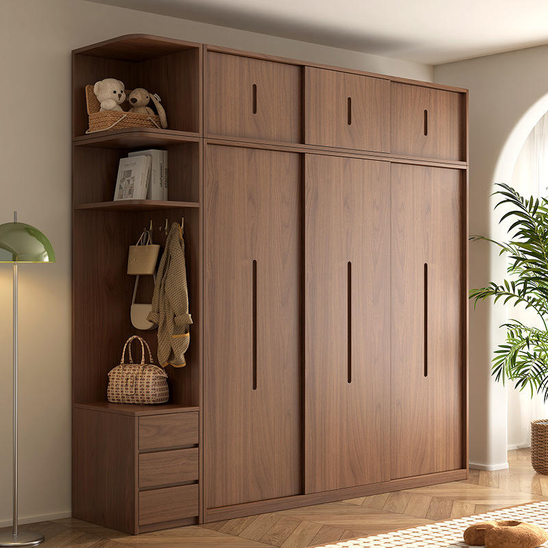 Armadio moderno semplice combinazione con porta scorrevole in legno massello di noce originale per camera da letto o soggiorno