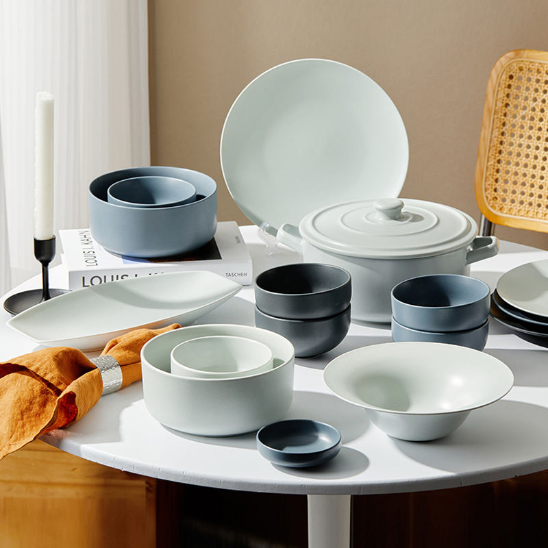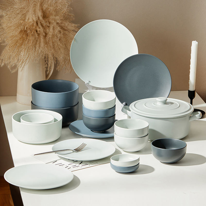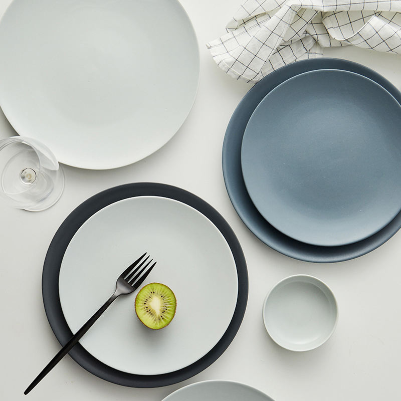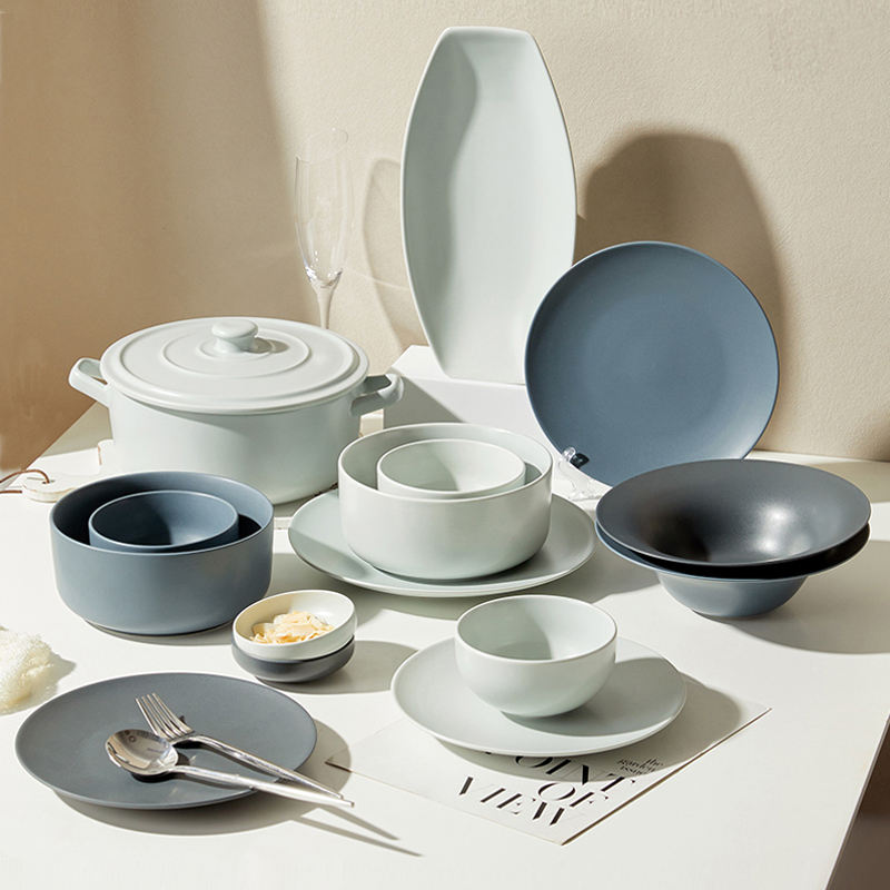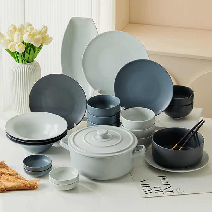 Set di Piatti in Ceramica Moderno e Semplice con Smalto Opaco Maculato Personalizzabile per Ristorante, Set da Tavola per 4 Persone
