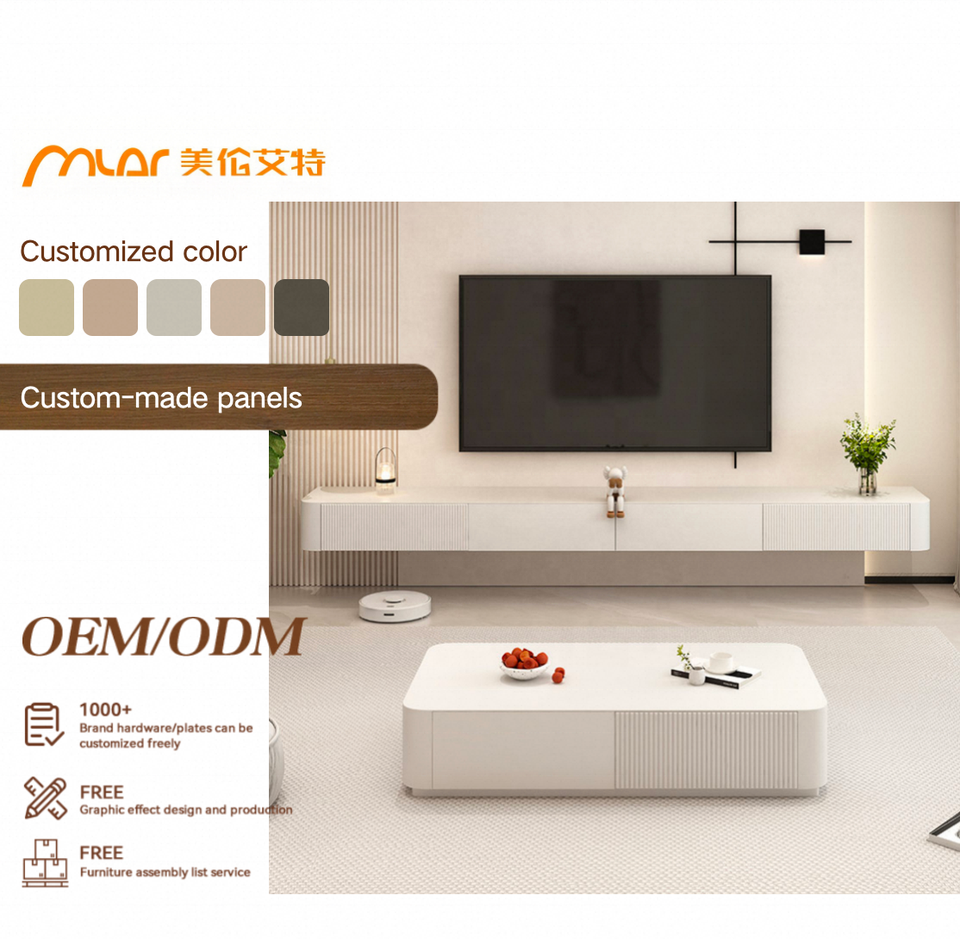 Set mobile TV sospeso e tavolino flottante, legno laccato bianco, nordico moderno, per soggiorno/bagno, gar. 1 anno, 45–60 gg