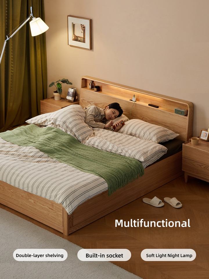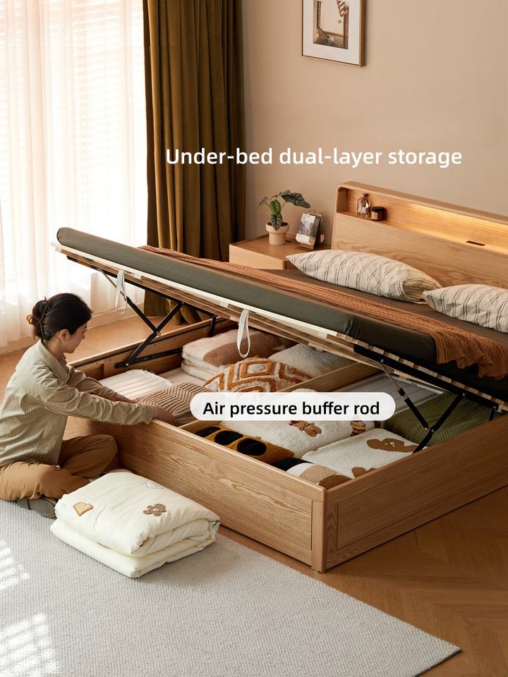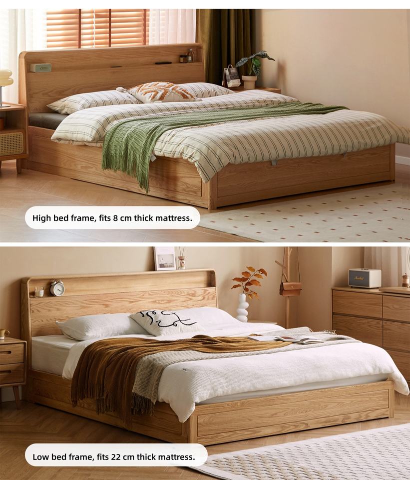 Letto Contenitore Moderno e Semplice in Quercia in Legno Massello Letto Matrimoniale Salvaspazio Multifunzionale per Casa e Appartamento
