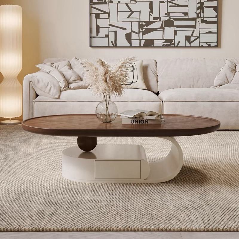 Modern Simple Small Living Room Home Network Red Creative Cream New Designer Walnut Solid Wood Coffee Table