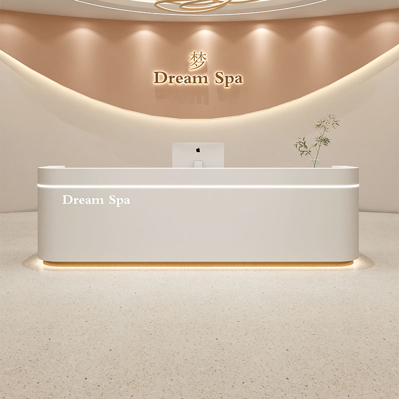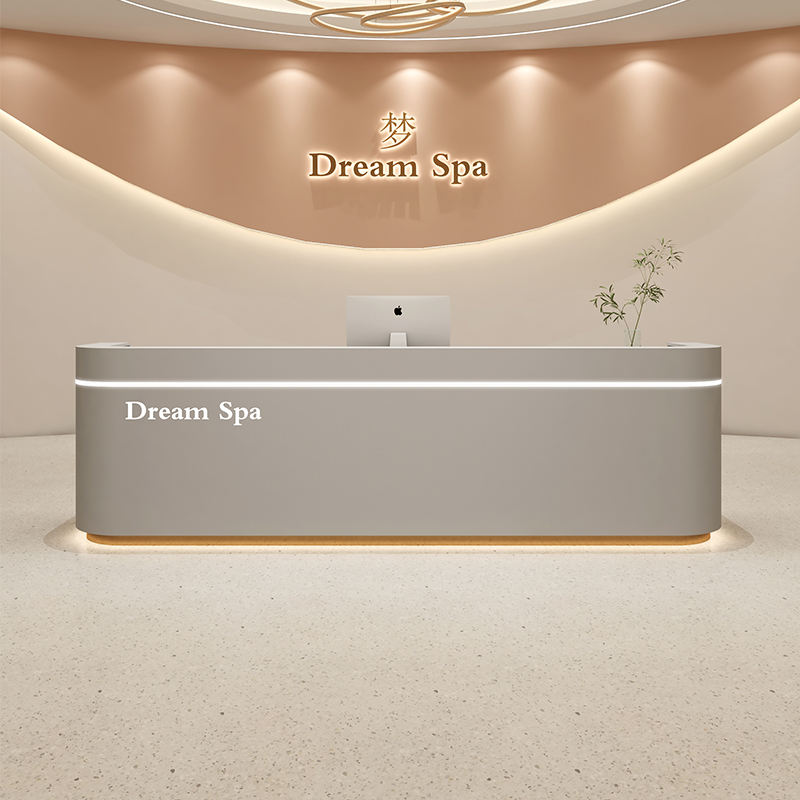 Moderno semplice banco di accoglienza in legno per Studio di bellezza salone di bellezza Studio post-partum Care Center Dance Class Company Front