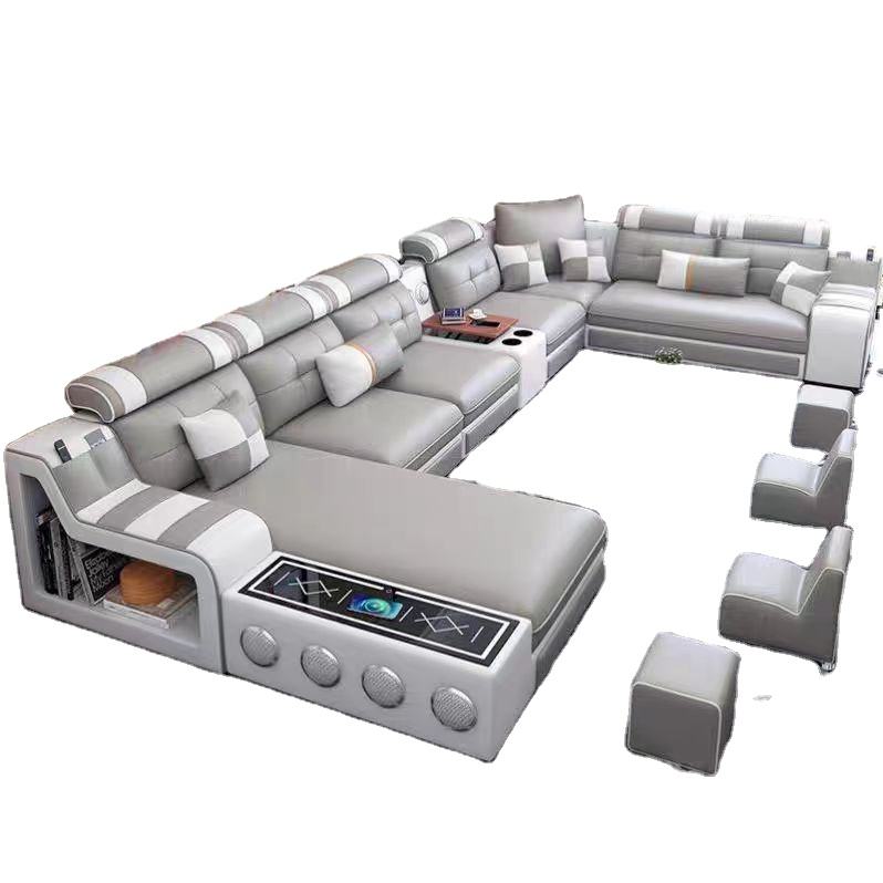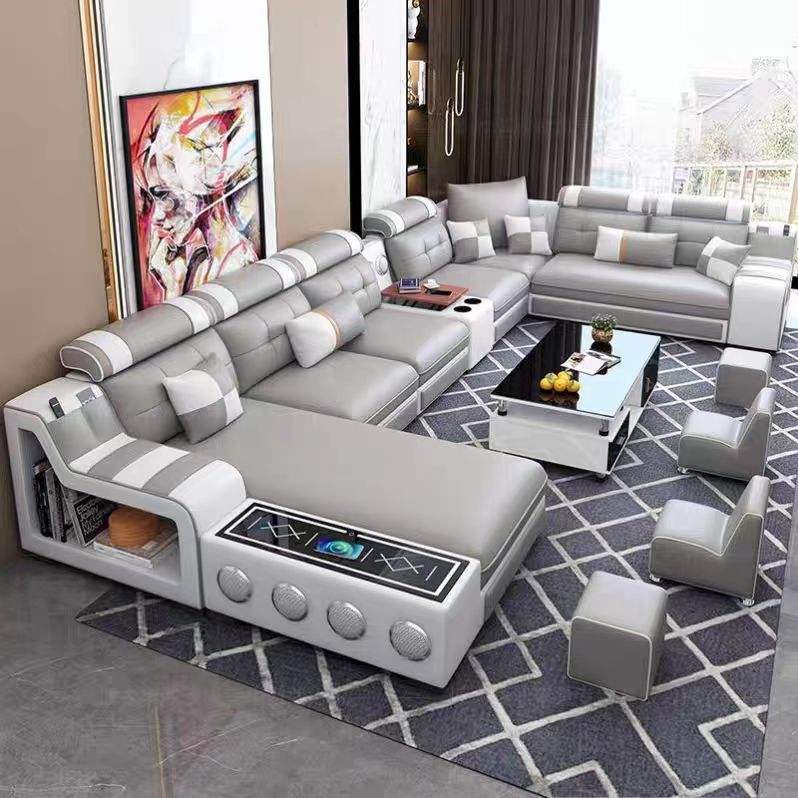 Divano Angolare Modulare di Alta Qualità con Design Moderno ed Essenziale, Funzioni Audio Musicali e Ricarica USB per Arredamento Casa
