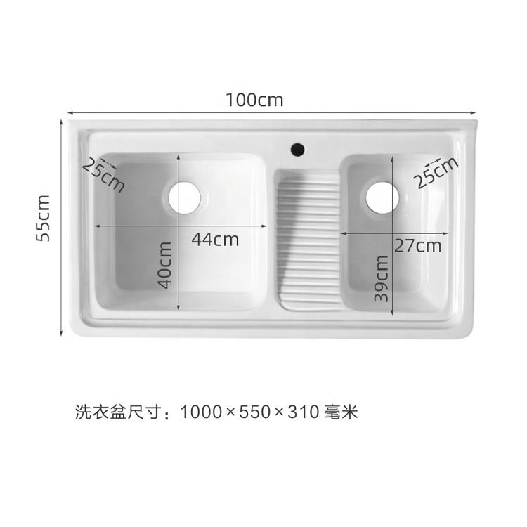 Lavabo Moderno in Ceramica a Foro Singolo, Rettangolare, in Pietra Artificiale per Bagno o Hotel, Facile Installazione, Doppio Lavabo