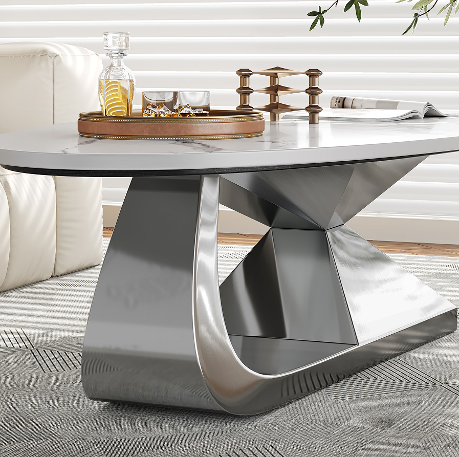 Tavolino da Caffè Moderno con Piano in Pietra Sinterizzata e Base in Acciaio Inox - Arredamento Ecologico per Soggiorno, Elegante e Durevole