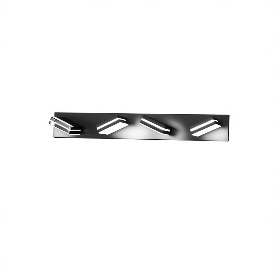 Moderna Lampada da Parete a 4 Luci LED Cromata in Ferro Nero per Specchio da Bagno, Facile da Installare ed Efficiente dal Punto di Vista Energetico