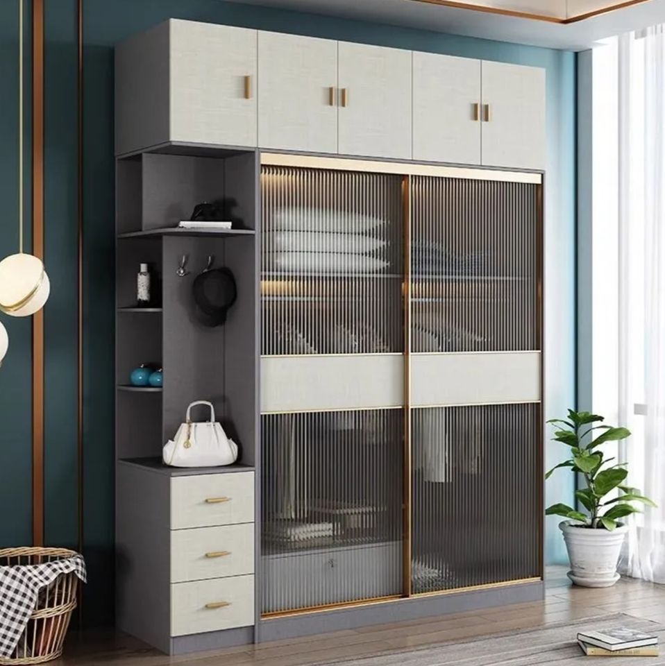 Modern Sliding Door Wooden Clothes Wardrobe New Designs for Home Furniture Kitchen & Living Room Use Movable Closet