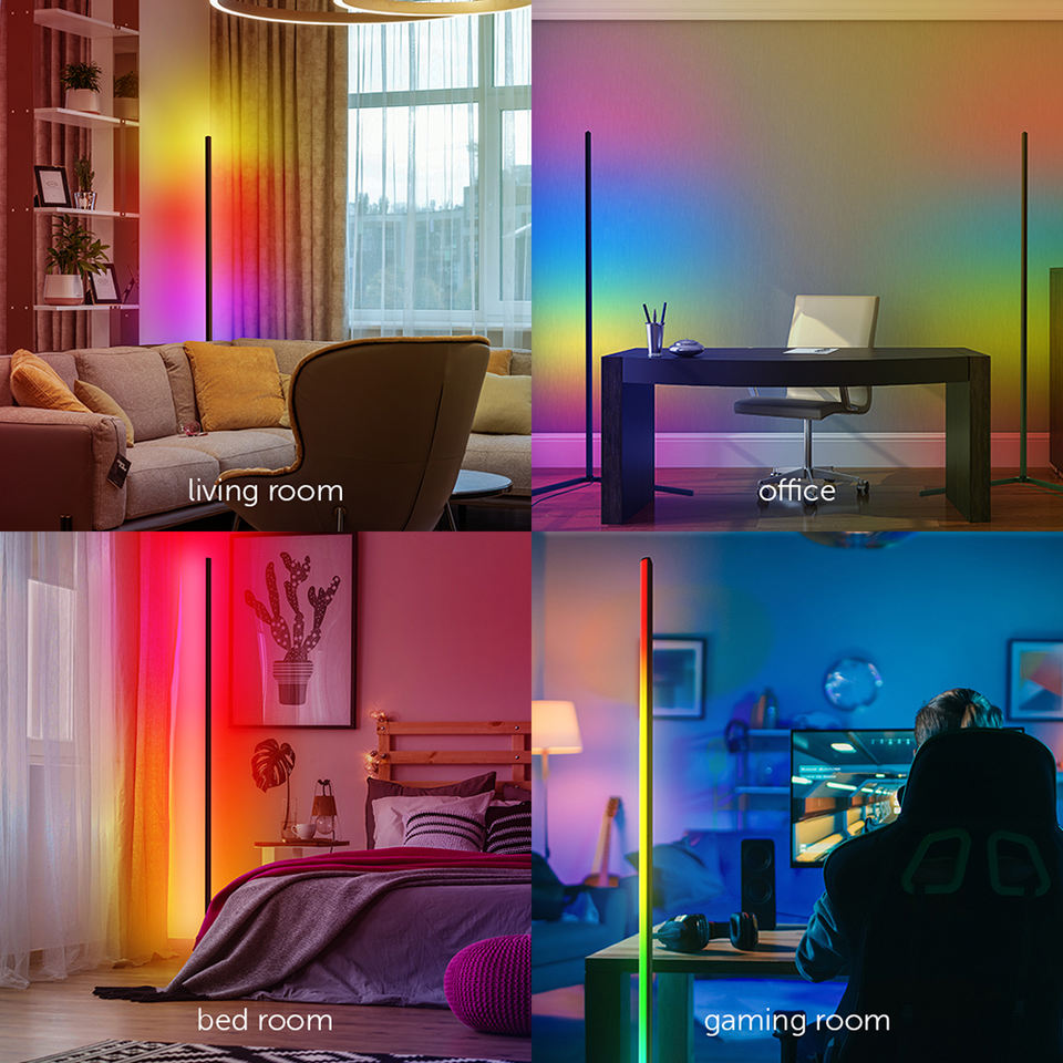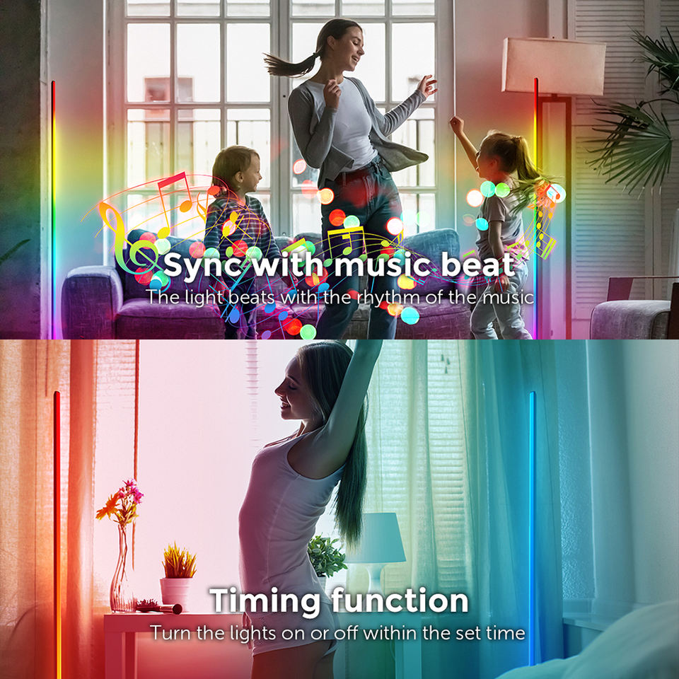 Lampada da Terra Angolare Moderna Smart 145cm Kit Striscia LED RGBW Multicolore Controllo APP Bluetooth Sincronizzazione Musicale per Soggiorno