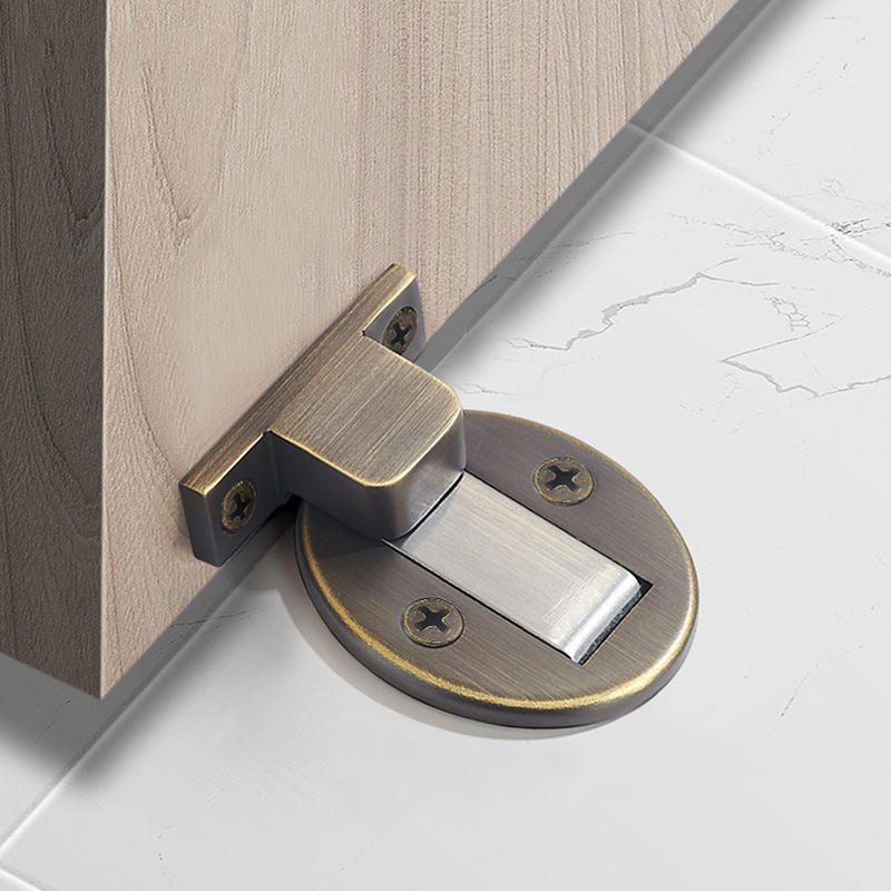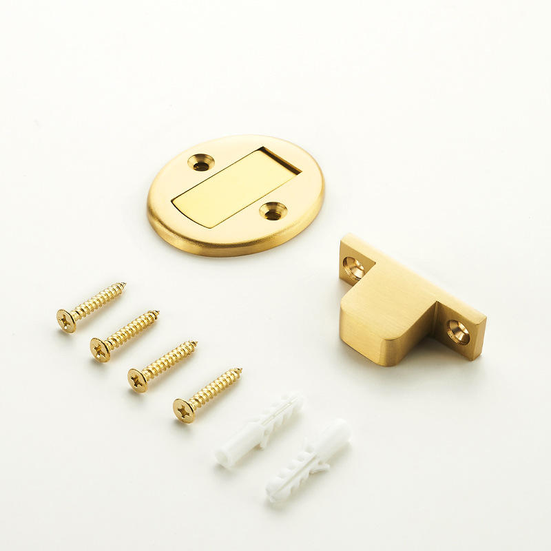 Modern Solid Brass Invisible Door Stop Brushed Brass Strong Magnetic Silent Doorstop for Kitchen Bedroom Golden Bathroom