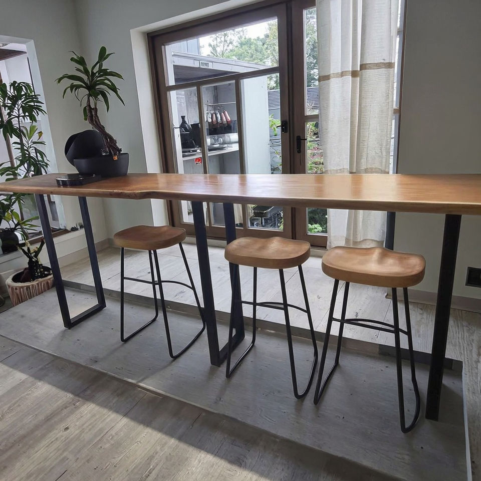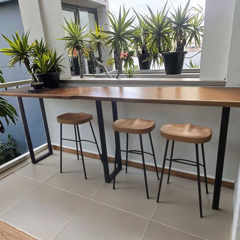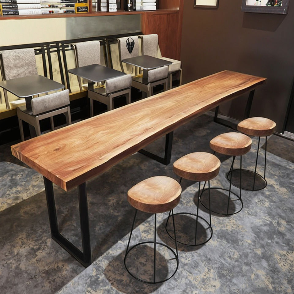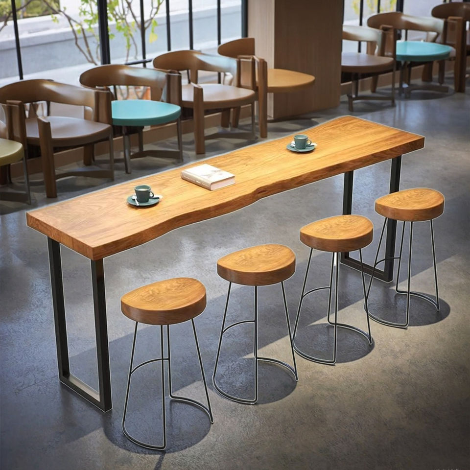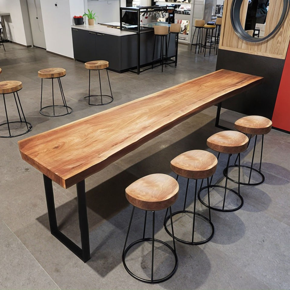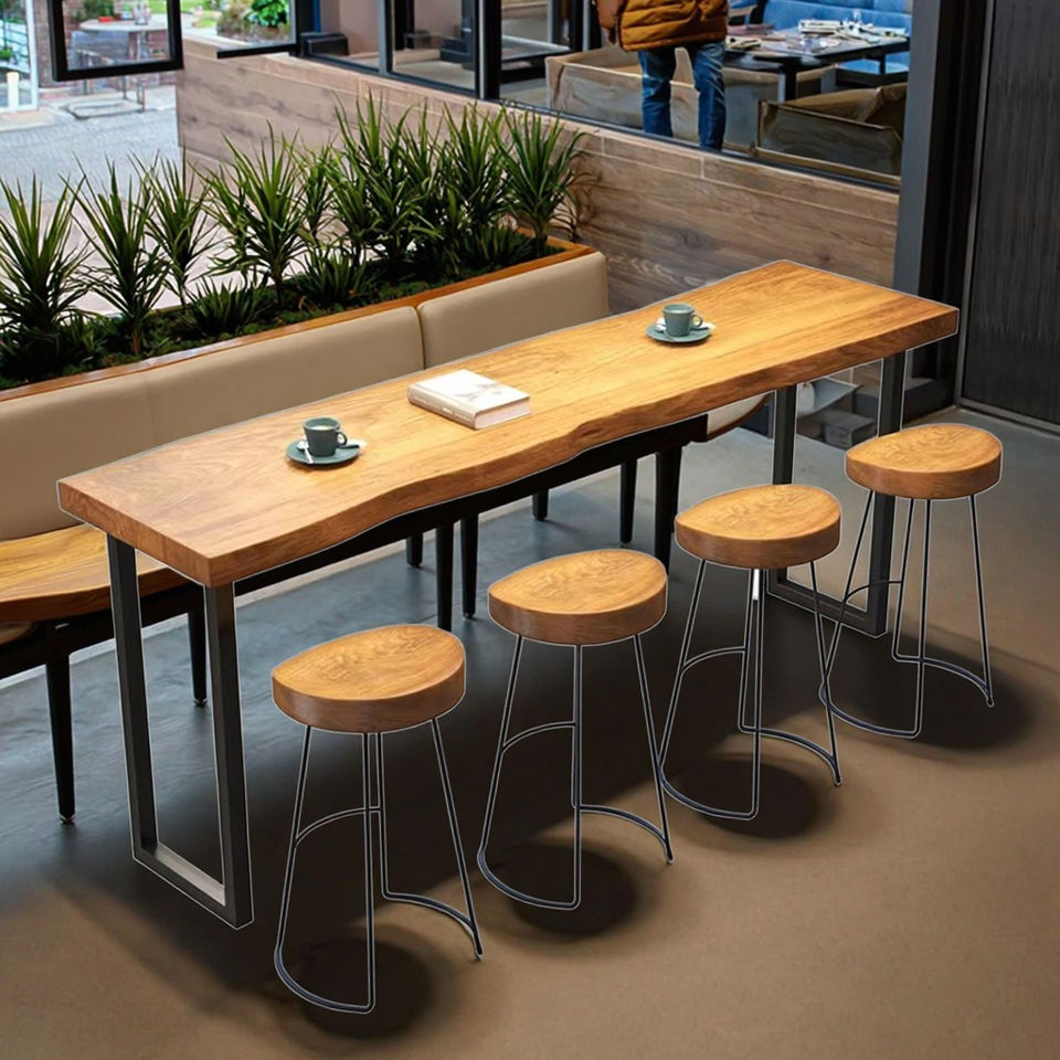 Modern Solid Wood Commercial Bar Table High Chair Combination Customized Wall-Mounted Long Table for Home Balcony Furniture