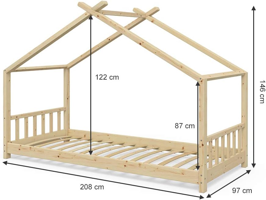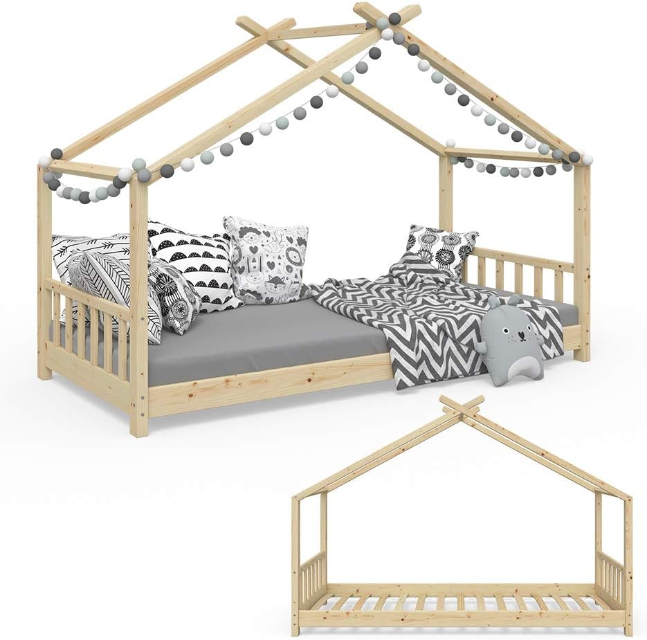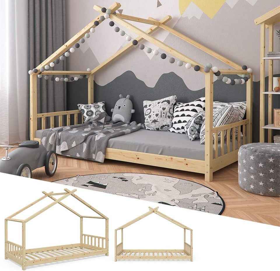 Letto Montessori per Bambini in Legno di Pino Massiccio, Ecologico e Durevole, Personalizzabile, Stile Casa