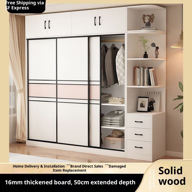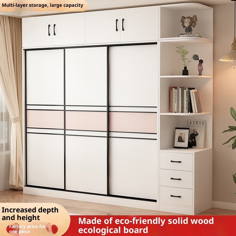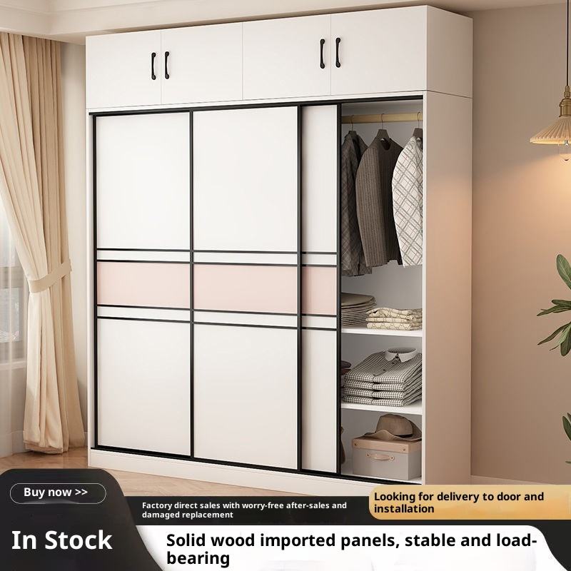 Armadio Moderno in Legno Massello con Ante Scorrevoli per Camera da Letto di Piccoli Appartamenti, Design Multifunzionale Rinforzato QIT A3835 5+