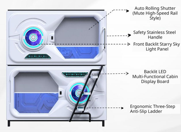 Capsula per Dormire Moderna Tipo Space Pod Costruzione Durevole in Metallo ed Ecologica in ABS Sicura per Hotel Dormitori Negozi