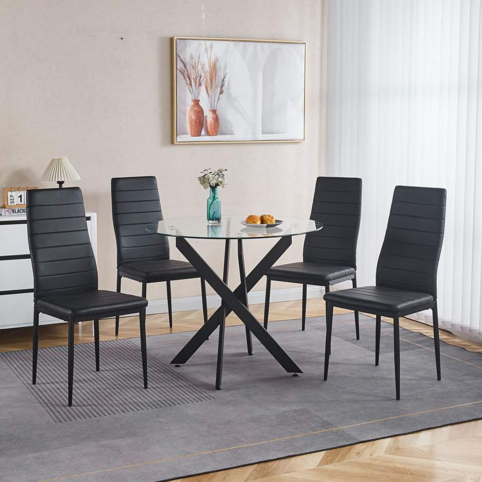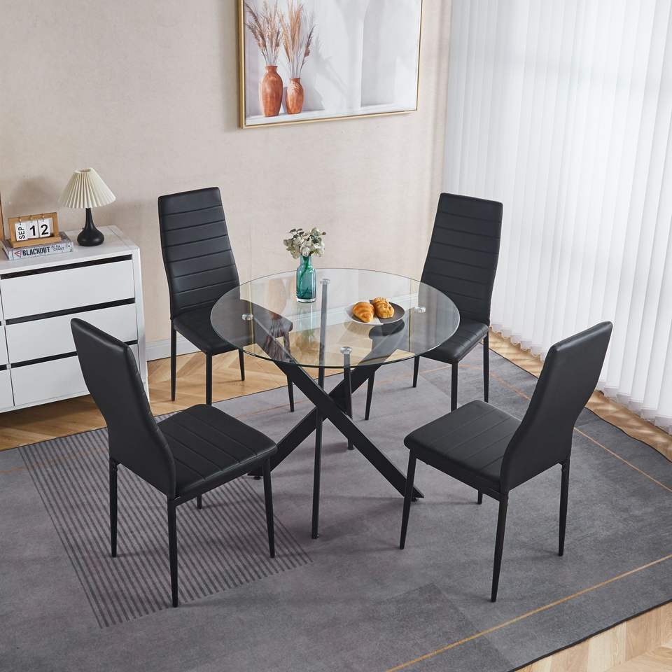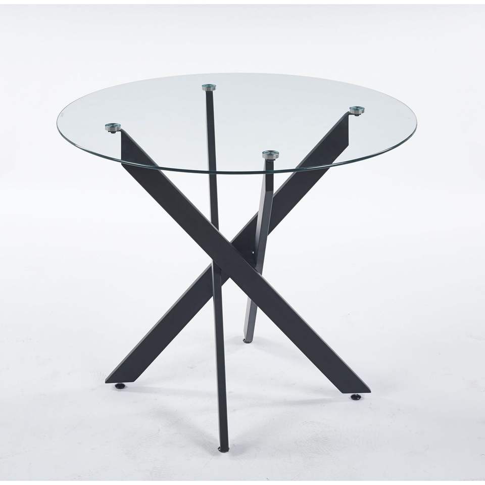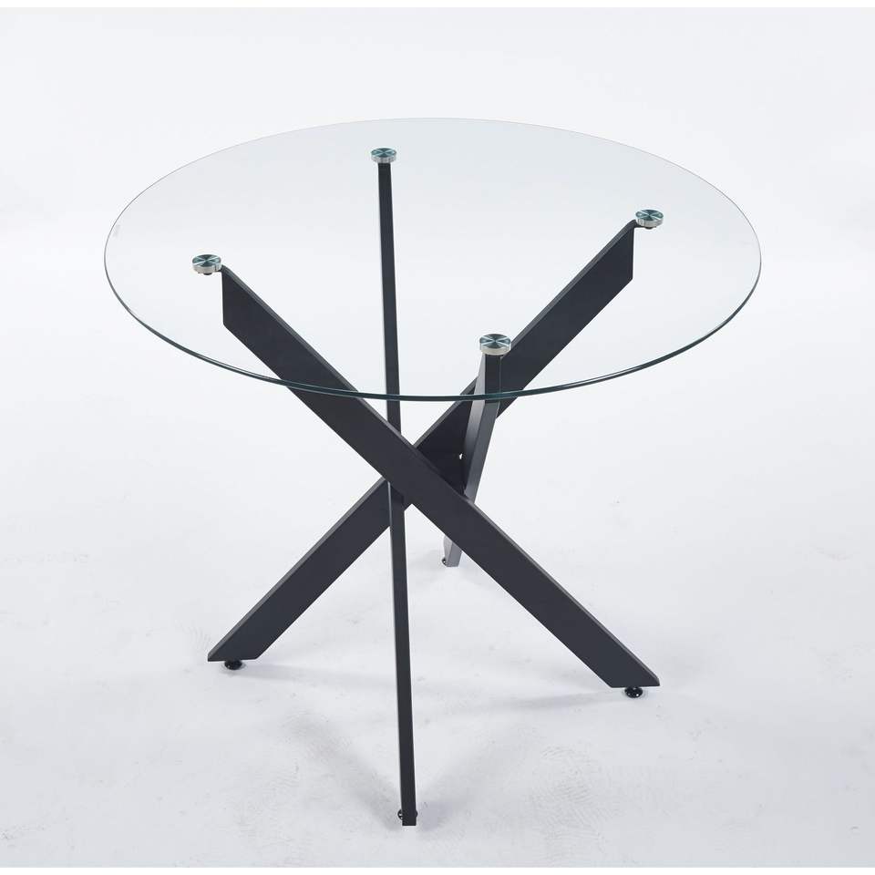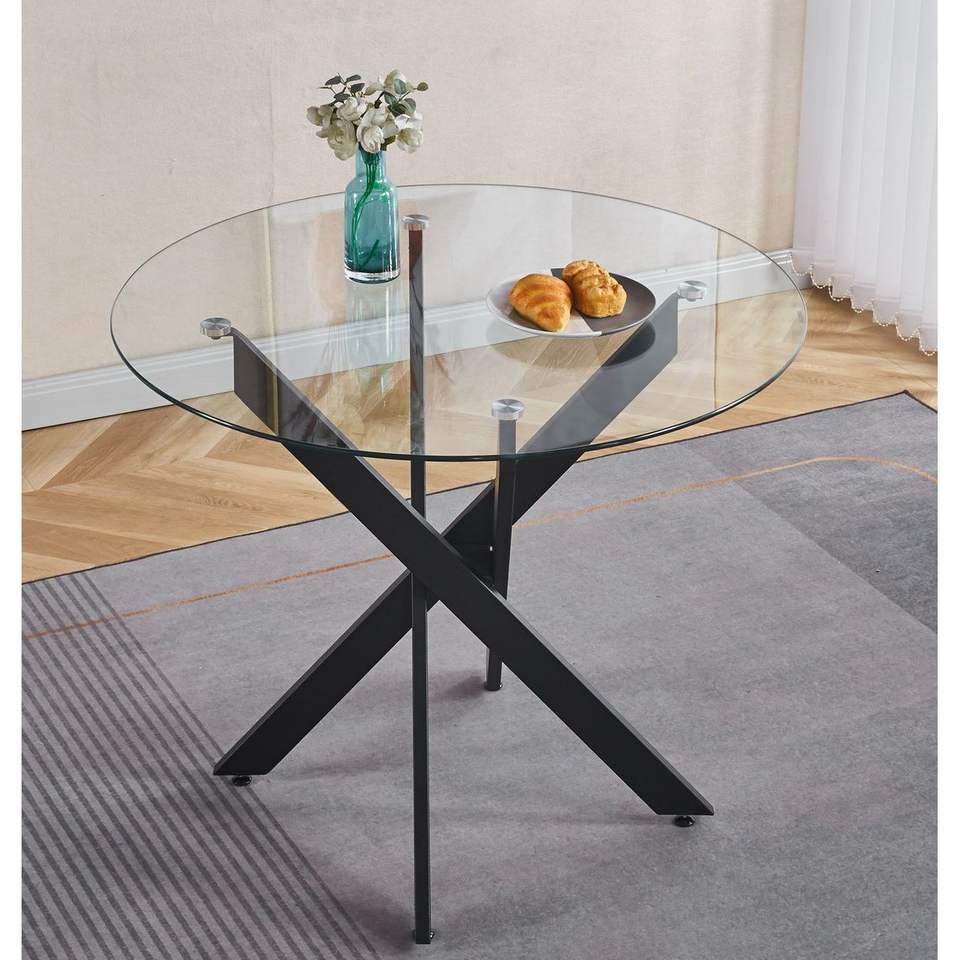 Tavolo da Pranzo Moderno Salvaspazio Nero con Gambe Incrociate in Metallo e Piano in Vetro Temperato per Cucina o Soggiorno