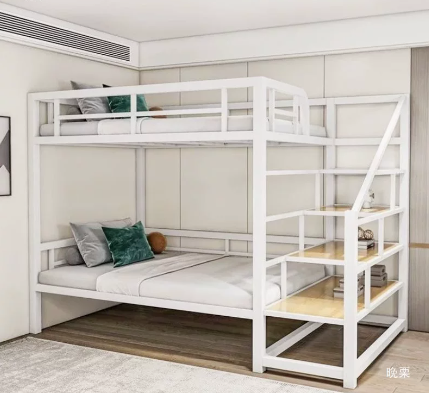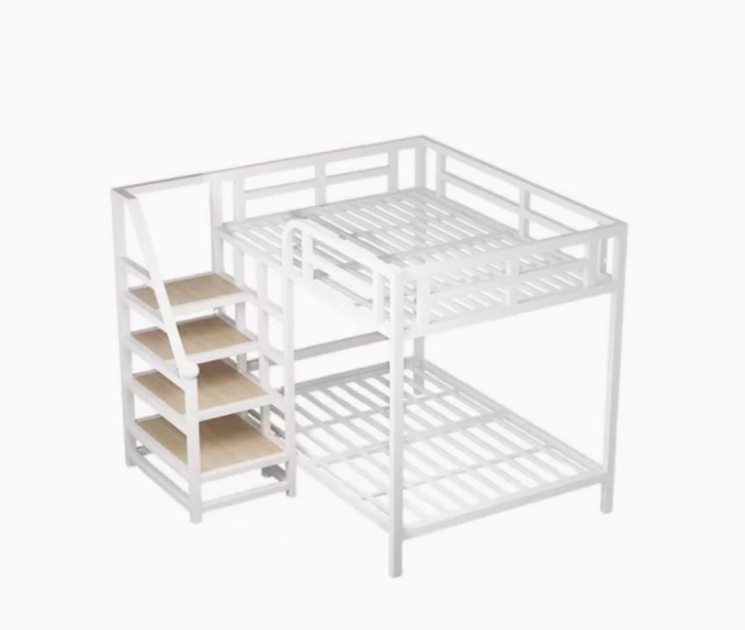 Letto a castello moderno salvaspazio con struttura in ferro, letto a soppalco per adulti (superiore/inferiore), con tavolo sospeso, ideale per famiglie piccole