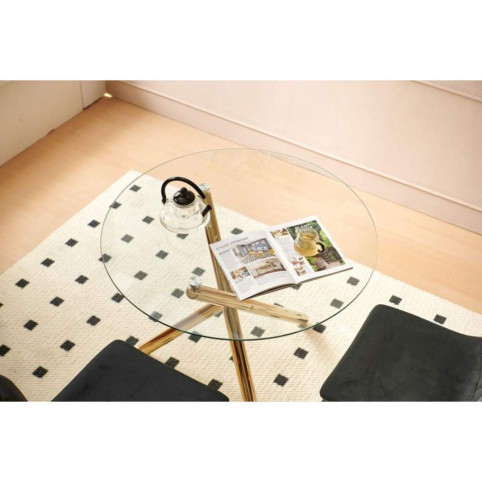 Tavolo da Pranzo Moderno Salvaspazio Dorato con Gambe in Metallo e Piano in Vetro per Cucina o Soggiorno