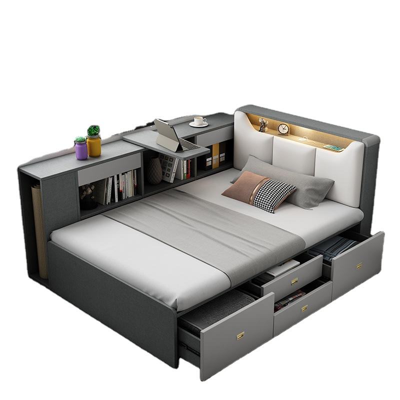 Letti Gemelli Moderni Salvaspazio in Ecopelle per Bambini con Pannelli in Legno di Teak Mobili Funzionali per Camera da Letto Singoli e Matrimoniali con Vano Contenitore