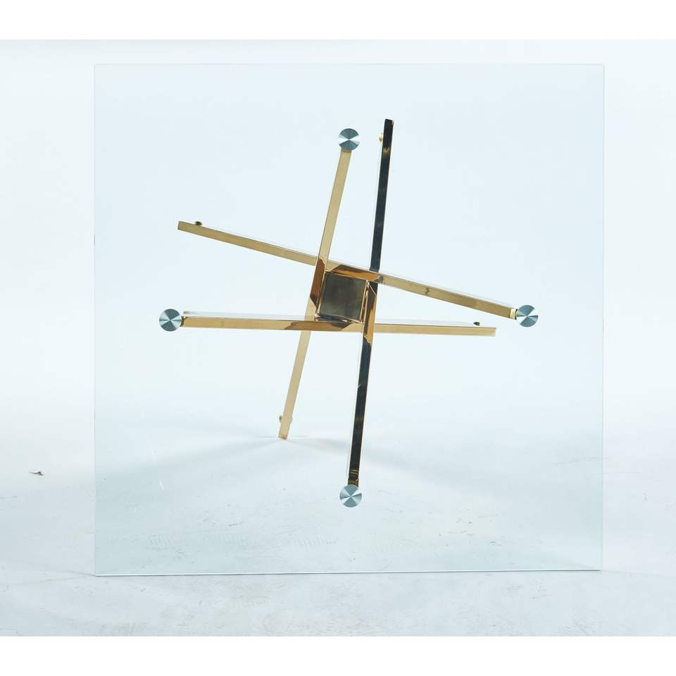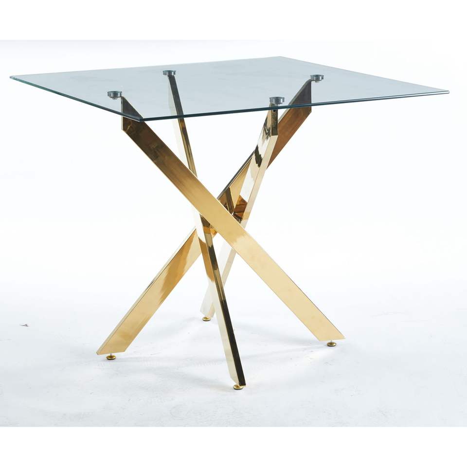 Modern Square Dining Table with Cross Metal Leg Tempered Glass Space Saving for Kitchen & Living Room Chrome & Golden Legs