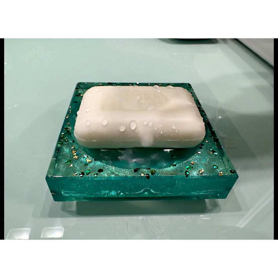 Modern Square Portable Self Drain Luxury Contemporary Sparkle Clean Resin Soap Dish Holder Custom Surface Finishing for Bathroom