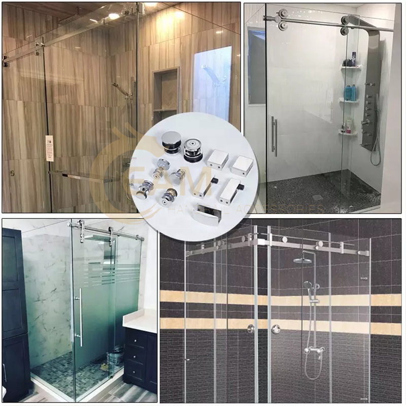 Kit Hardware Moderno in Acciaio Inox 304 per Porte Scorrevoli in Vetro per Doccia, Accessori Bagno con Finitura Satinata e Finestra in Plastica