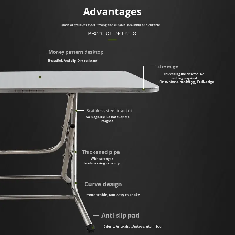 Tavolo pieghevole rettangolare moderno in acciaio inox per la casa all'aperto semplice quadrato lungo tavolo da pranzo per soggiorno