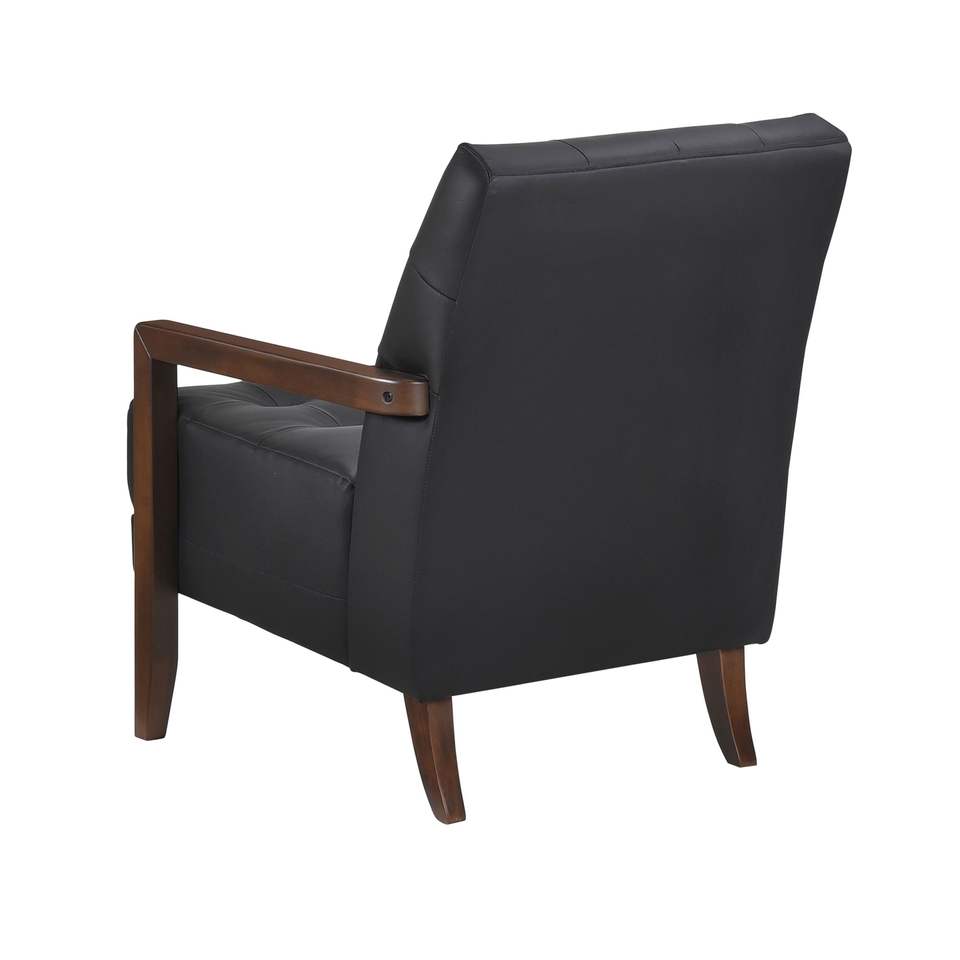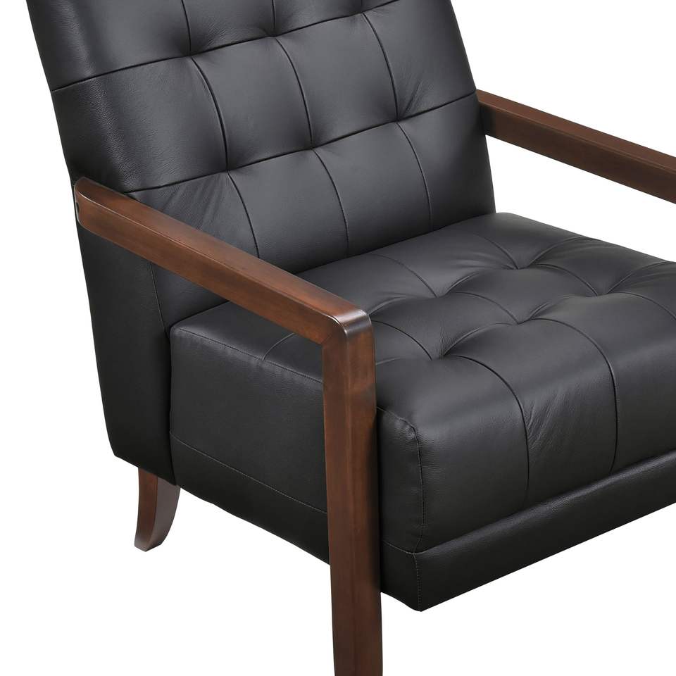 Poltrona Moderna in Pelle Nera Trapuntata con Finitura in Legno di Noce per Soggiorno