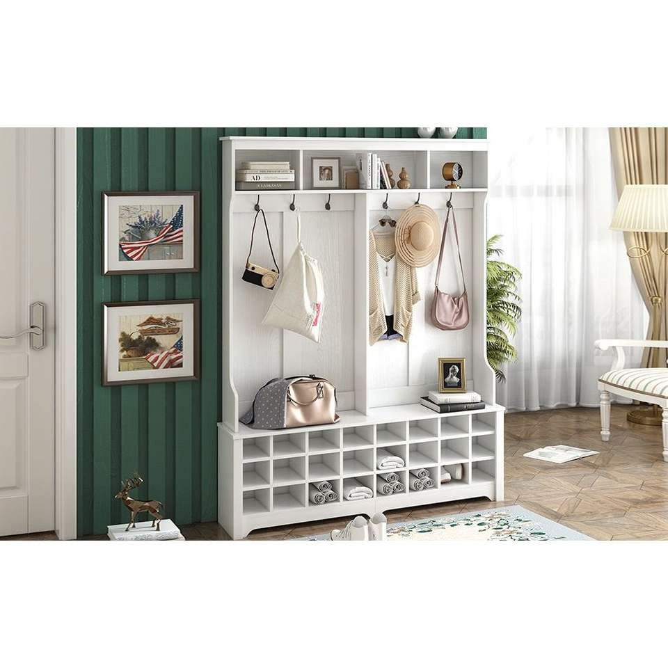 Stile moderno 60 \ "Wide Hall Tree 24 scarpe bianche su tendenza appendiabiti in metallo nero ganci ingresso panca ampio spazio di archiviazione