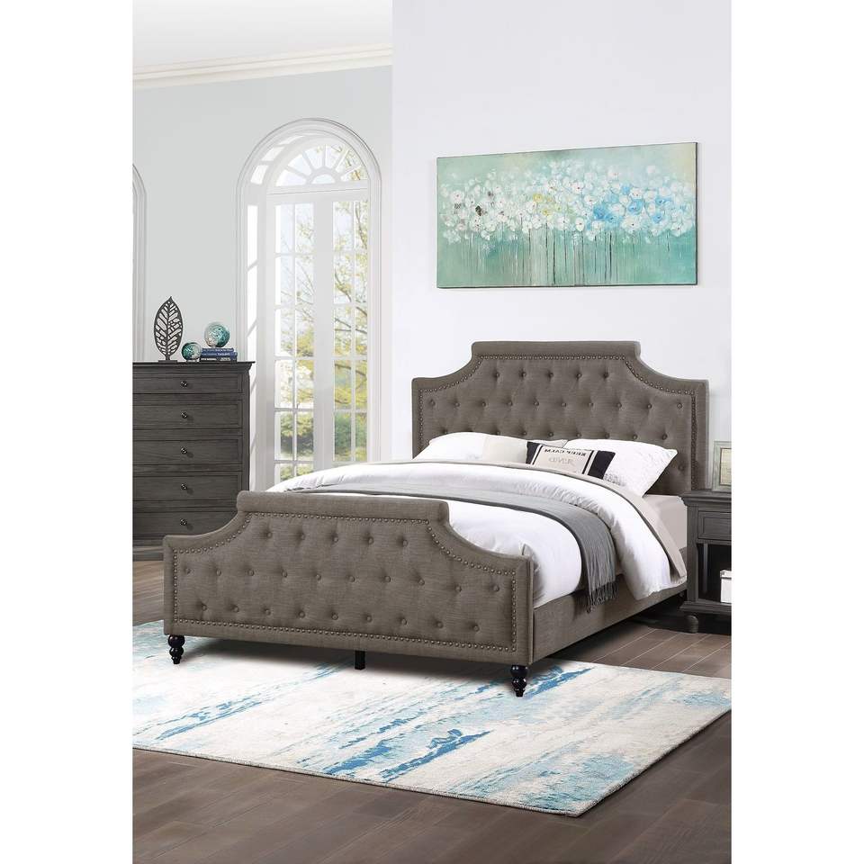 Testiera e Pediera Imbottite in Polifibra Marrone Stile Moderno Americano Tradizionale per Letto California King Size