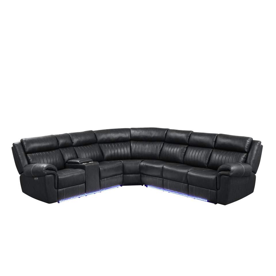 Divano Sezionale Reclinabile Stile Aviatore Moderno, Mobili per Soggiorno in Legno Nero
