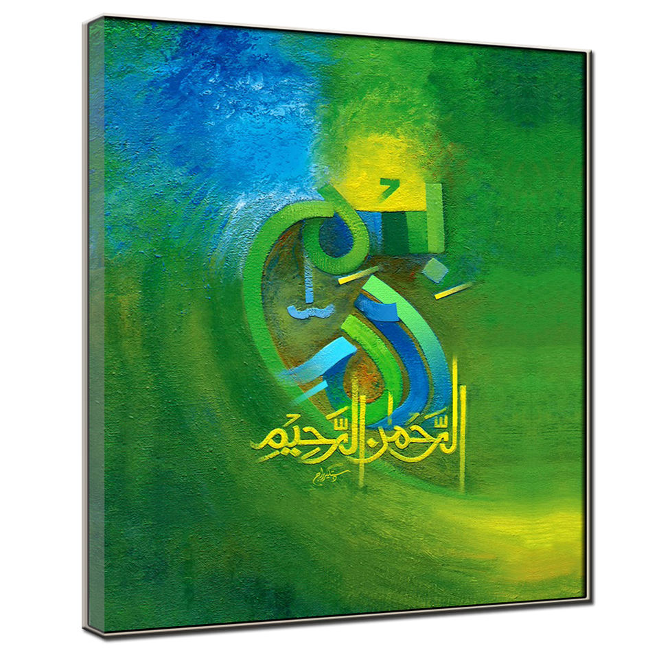 Quadro su Tela di Grande Formato in Stile Moderno con Calligrafia Islamica Dipinto a Olio Decorazione Murale Musulmana