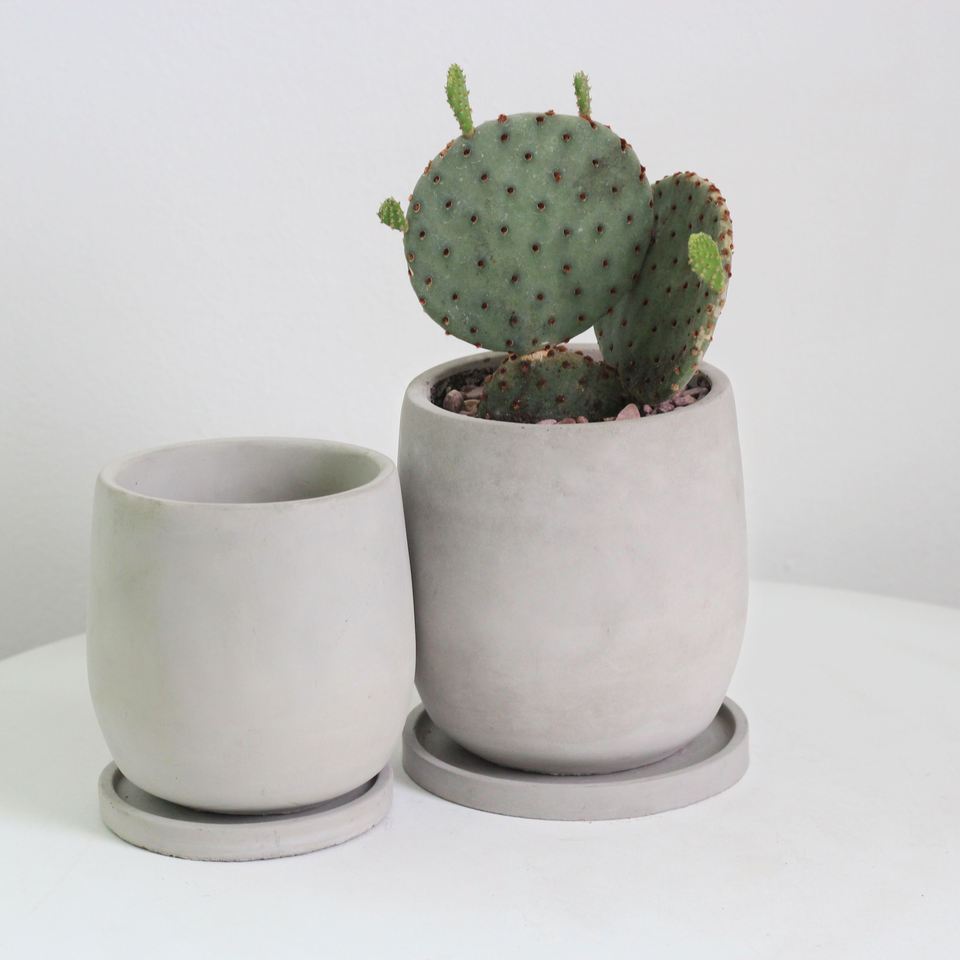 Modern Style Concrete Flower Pot Flower Vase with Saucer for Home Garden Decoration
