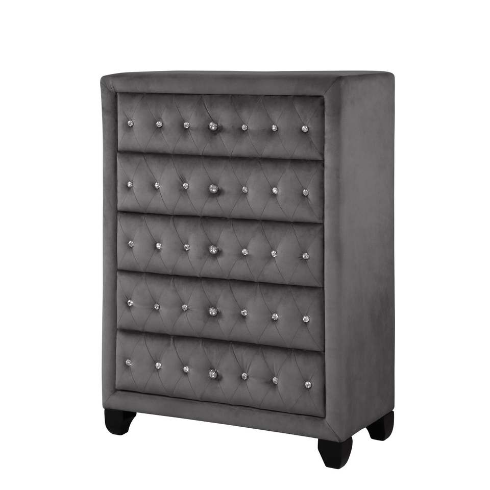 Tappezzeria in tessuto di velluto grigio con trapuntato a 5 cassetti in cristallo stile moderno con portaoggetti in legno a 5 cassetti