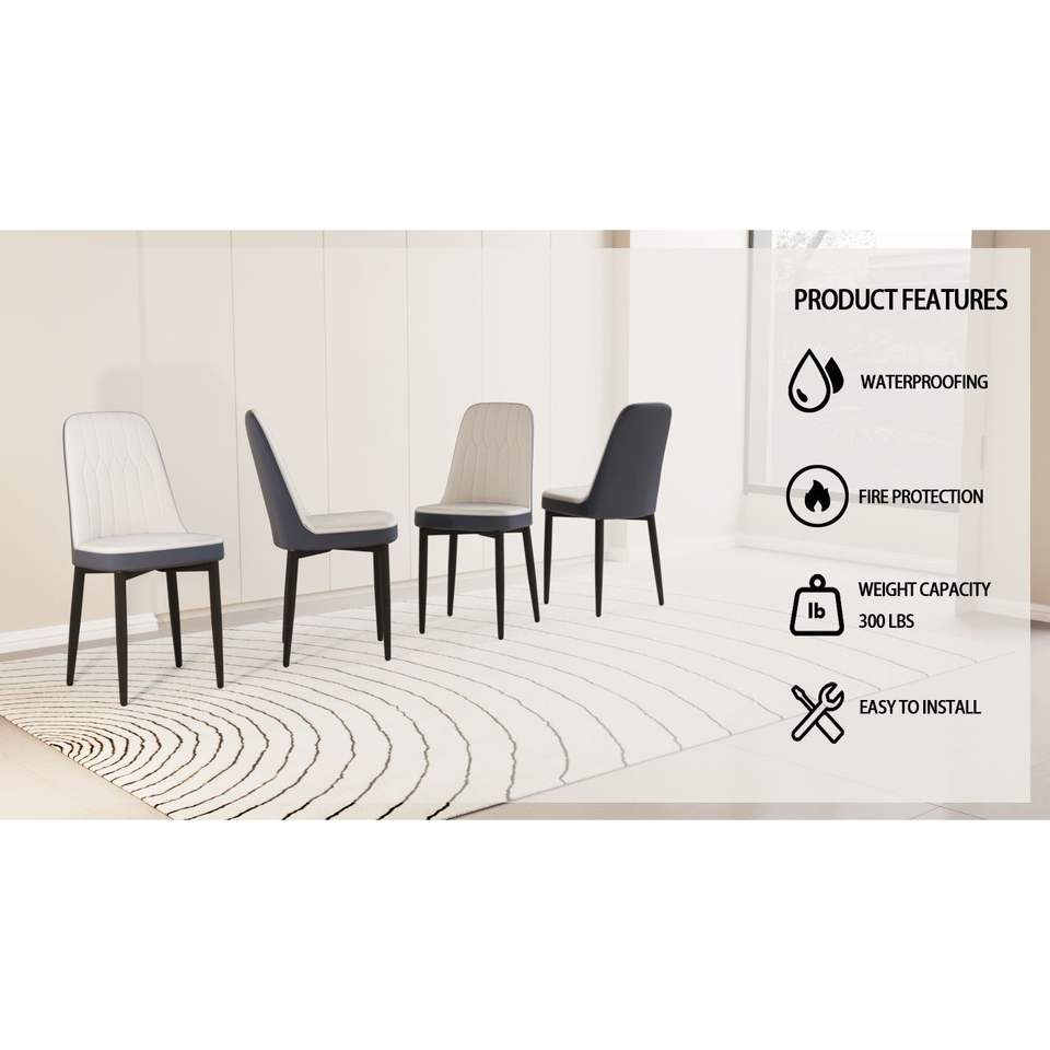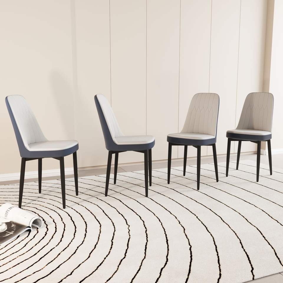 Set di 4 Sedie da Pranzo in Stile Moderno con Tessuto in Pelle PU di Alta Qualità e Cuscini Spessi e Morbidi, Gambe in Metallo Nero