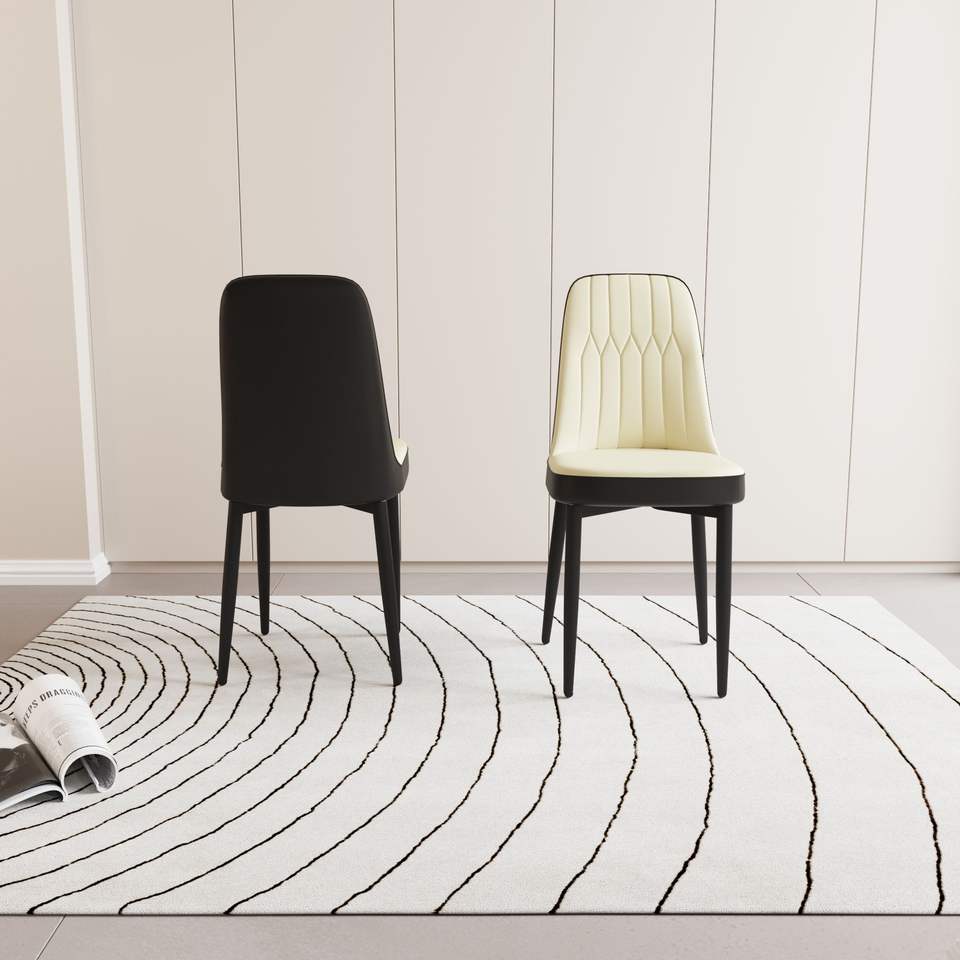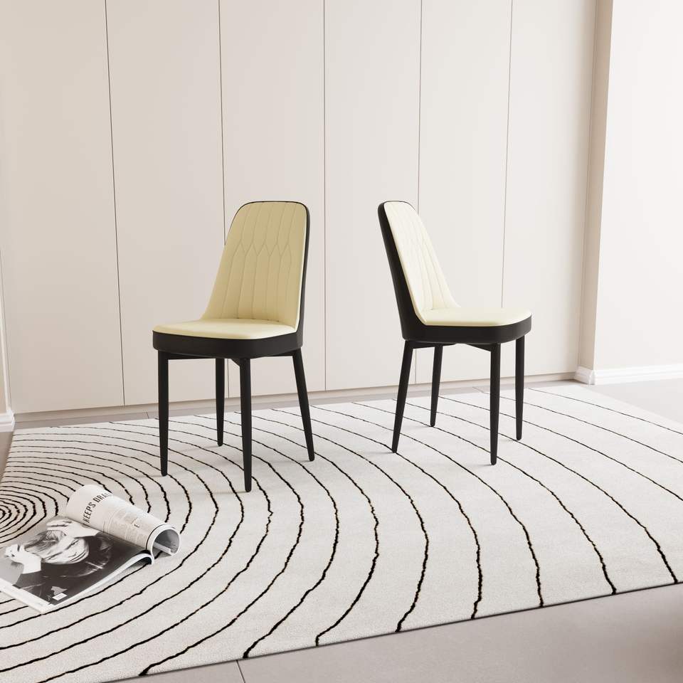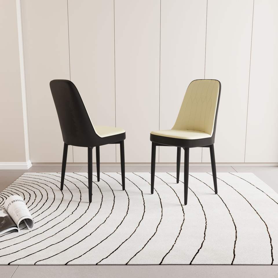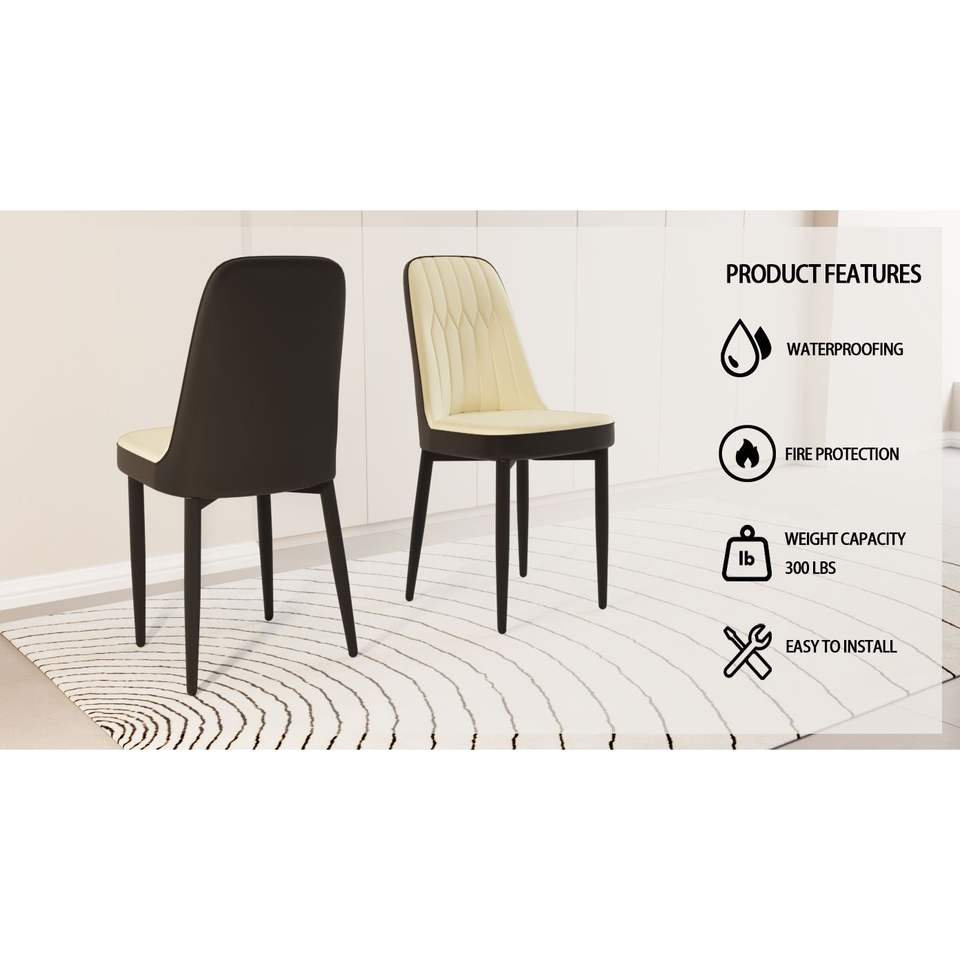 Set di 2 Sedie da Pranzo in Stile Moderno, Alta Qualità in Pelle PU e Tessuto con Cuscini Spessi e Morbidi, Gambe in Metallo Nero