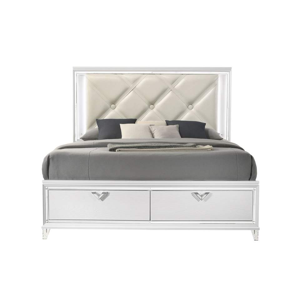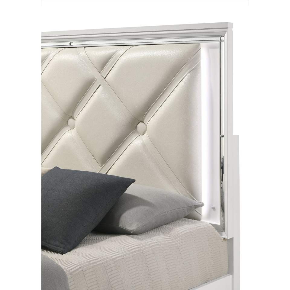 Letto King Size Moderno con LED e Maniglie a V, Mobili Imbottiti