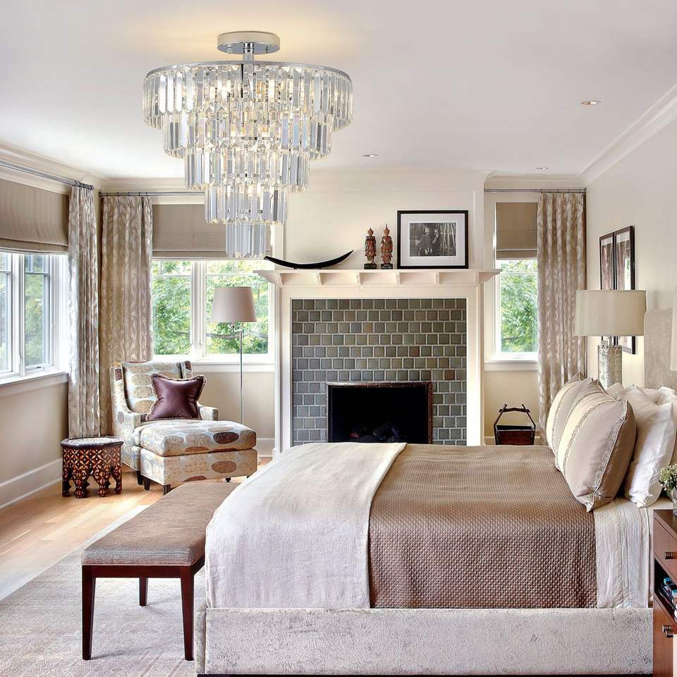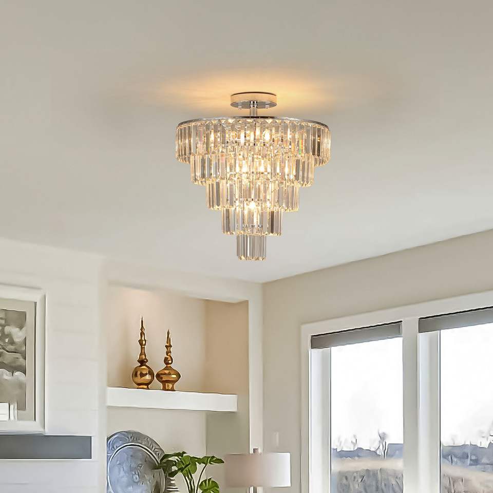 Lampadario Moderno Grande in Cristallo Bianco Cromato per Sala da Pranzo, Soggiorno o Camera da Letto (Senza Lampadina)