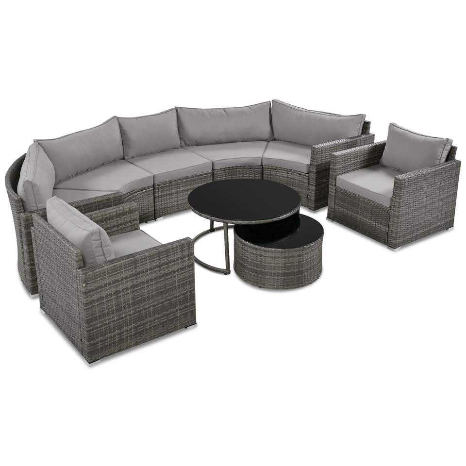 Divano da giardino in stile moderno da esterno a mezza luna Set da 9 pezzi rotondi in vimini grigi divani da giardino