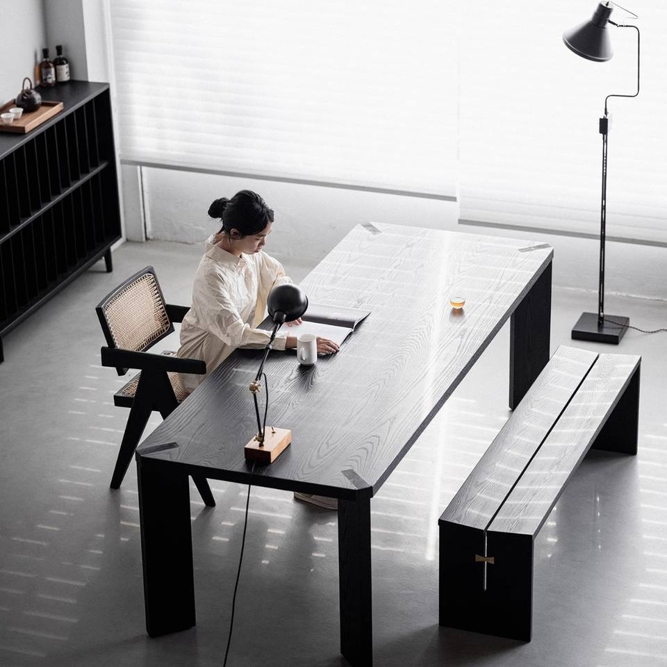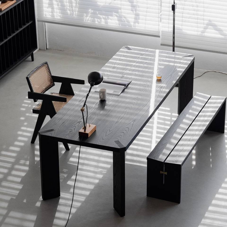 Tavolo da Pranzo Moderno in Legno Grezzo di Frassino, Scrivania Lunga Resistente, Tavolo Rettangolare Nero per Soggiorno e Reception