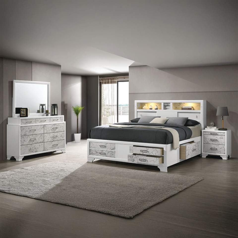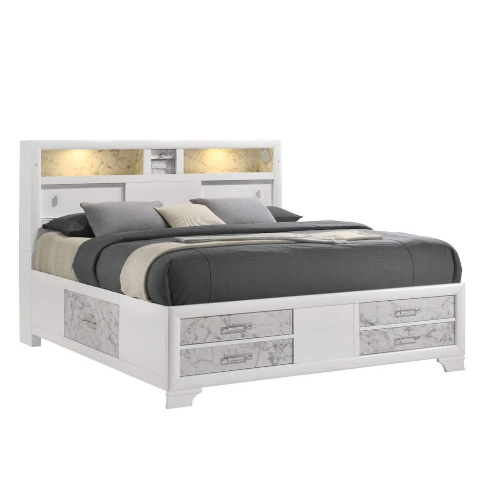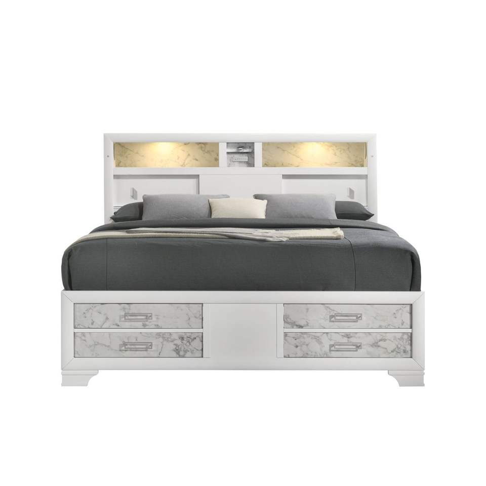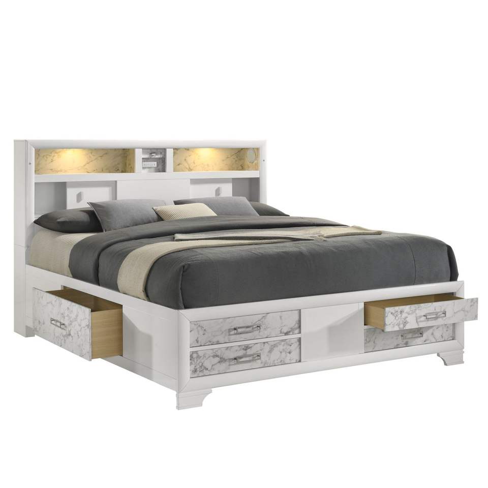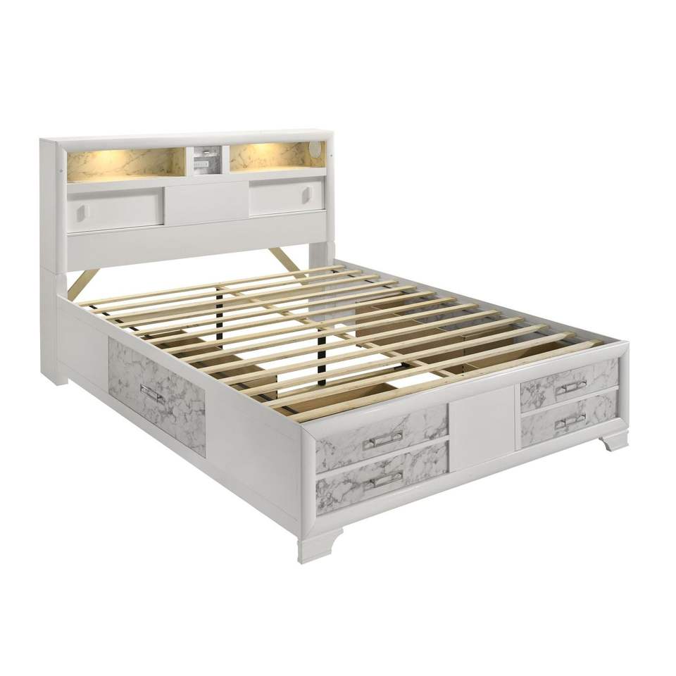 Modern Style Soul Full Bed with Drawers Made of Wood in White NJ Inventory