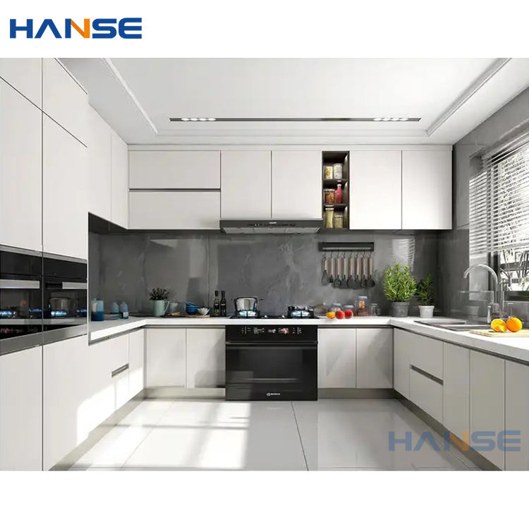 Customizable Design: This modern kitchen cabinet set from Hanse offers a customizable design to fit your specific needs, including a choice of door material (HPL, HPDL, MDF, solid wood, etc.), carcase material (MDF, Melamine board, particleboard, etc.), and countertop material (marble, granite, artificial stone, etc.).