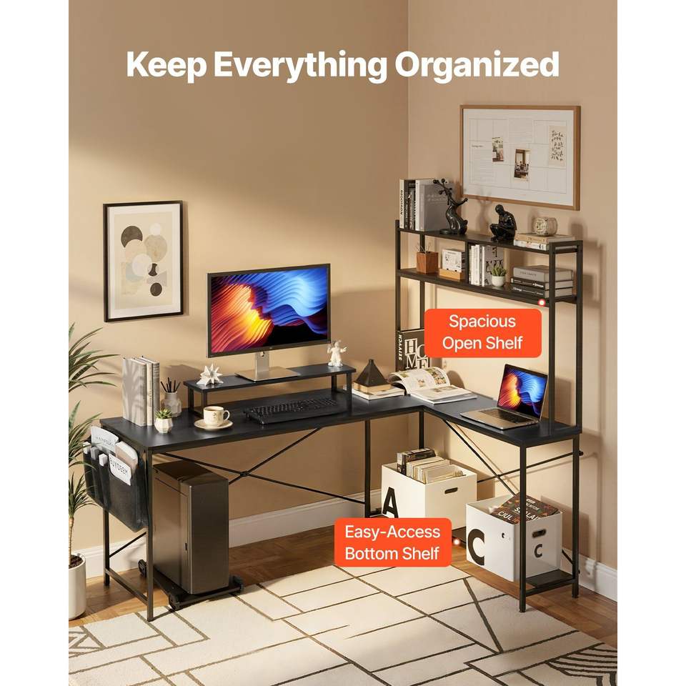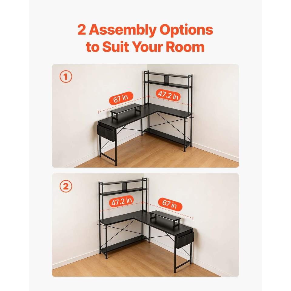 Scrivania da Gaming Angolare a L Moderna ed Elegante da 67 Pollici, Reversibile, con Supporto CPU Mobile e Supporto Monitor, Tavolo PC