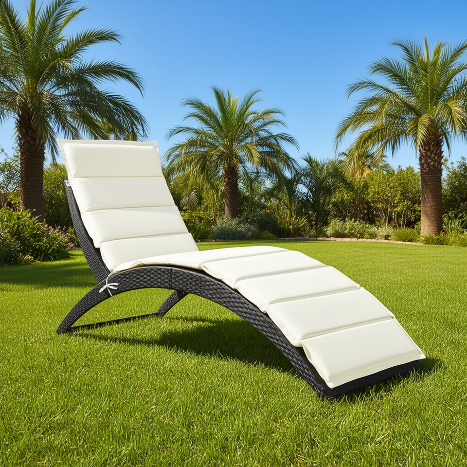 Lettino Prendisole Moderno in Rattan PE per Esterni con Cuscino, Reclinabile Pieghevole per Giardino e Patio