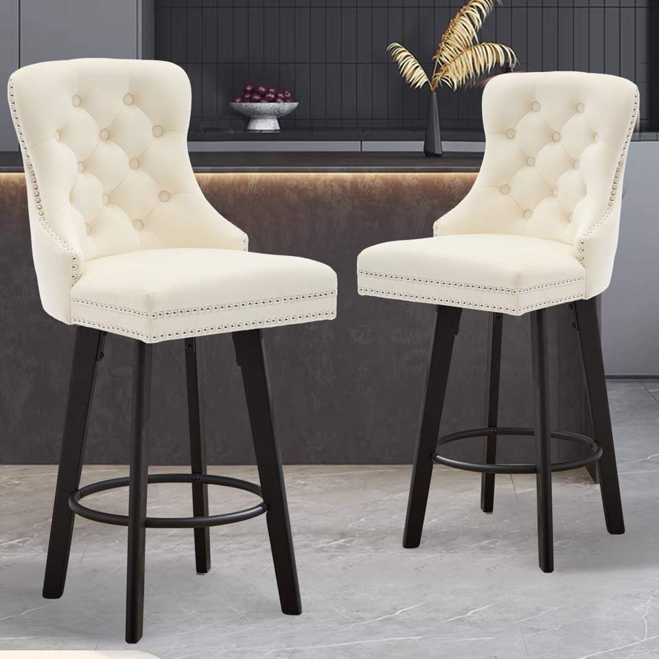 Moderni sgabelli da Bar girevoli grande schienale robusto pulsante poggiapiedi con rifiniture rivetti in velluto sgabelli cucina isola bistrot Home Bar