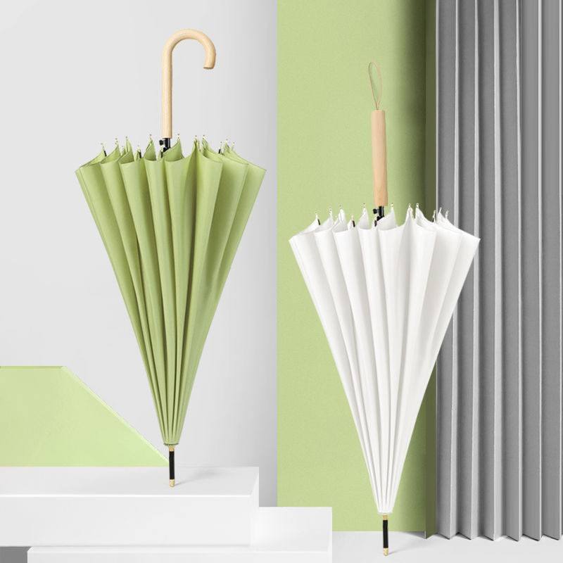 Modern TR Brand 16-Bone Golf Umbrella Long Dual-Use Wooden Curved Handle 105cm Open Diameter 190T Nylon Fabric Umbrella