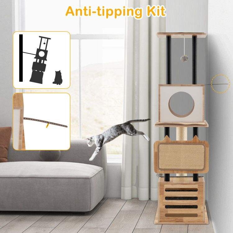 Torre per Gatti Moderna Alta con Palline Pendenti e Tappeti in Sisal, Doppio Conforto, Alberi e Tiragraffi Premium per Gatti