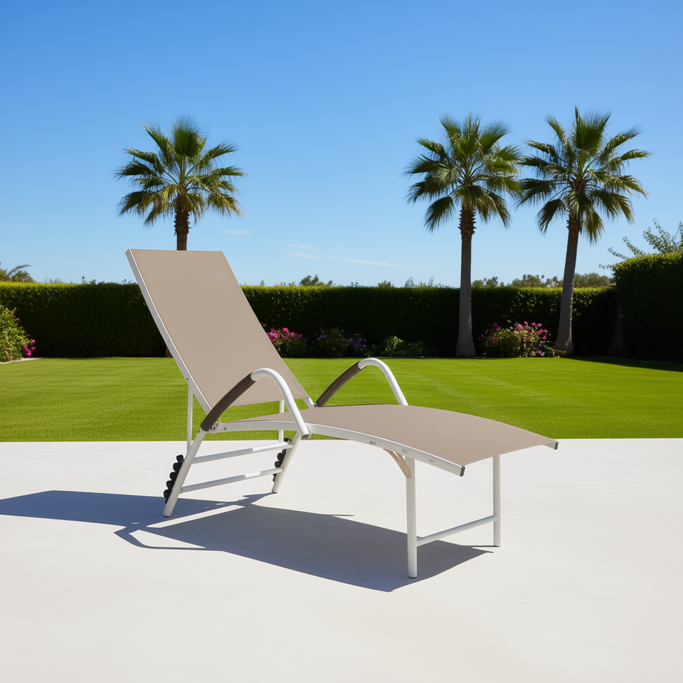 Modern Taupe Textilene Sun Lounger With Back Aluminum Frame Outdoor Reclining Lounge Chair Contemporary Design