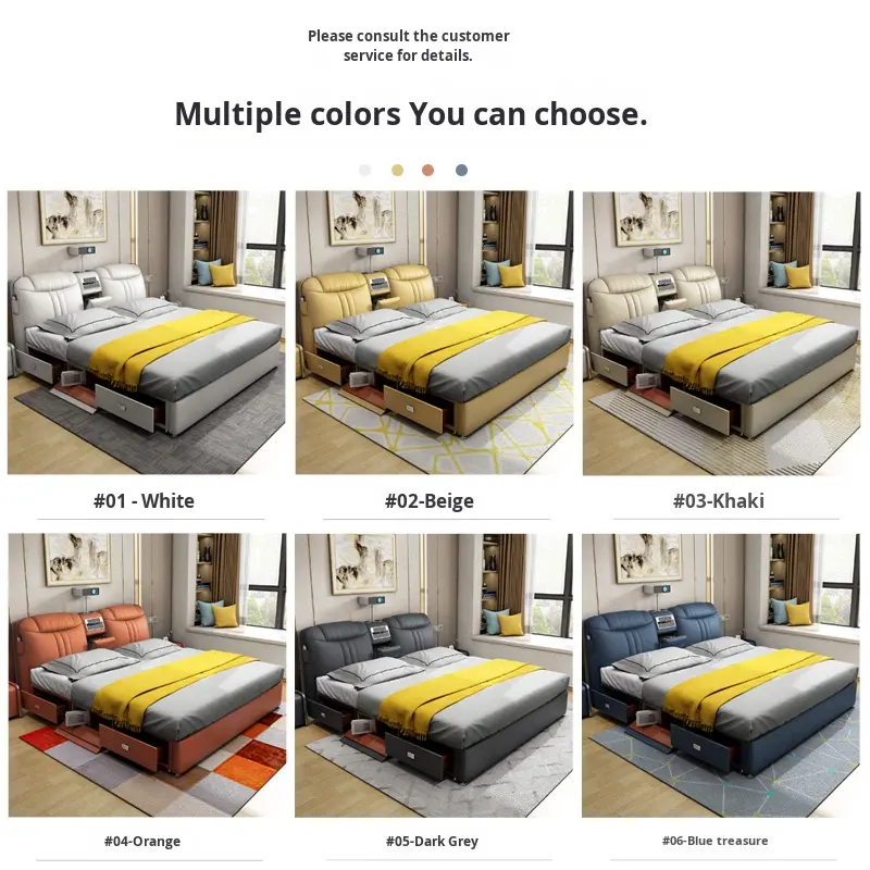 Letto Moderno in Tessuto e Pelle con Massaggio, Contenitore, Arredamento per Casa, Letto Matrimoniale con 2 Cassetti Multifunzionale per Camera da Letto e Hotel