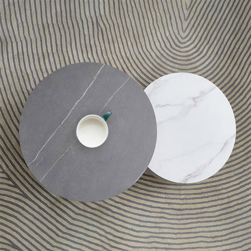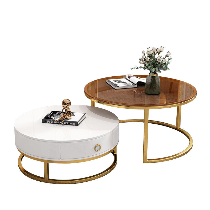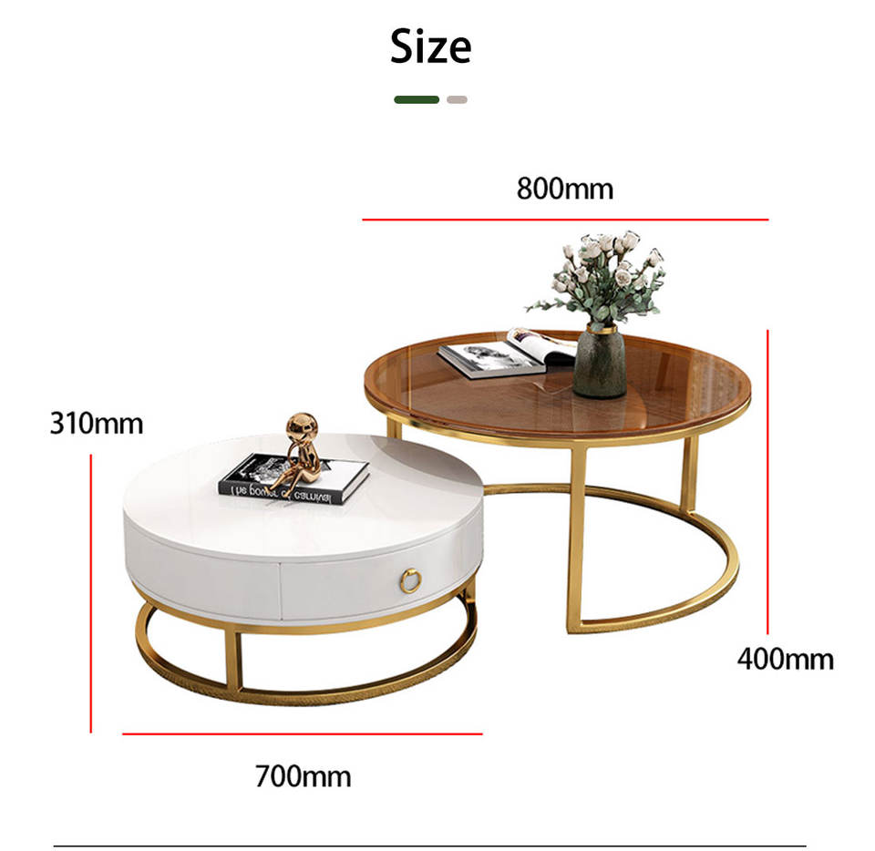 Tavolino da Caffè Moderno in Vetro Temperato Rotondo con Base Cromata, Set di Tavolini Impilabili a Nido d'Ape Effetto Ondulato per Salotto